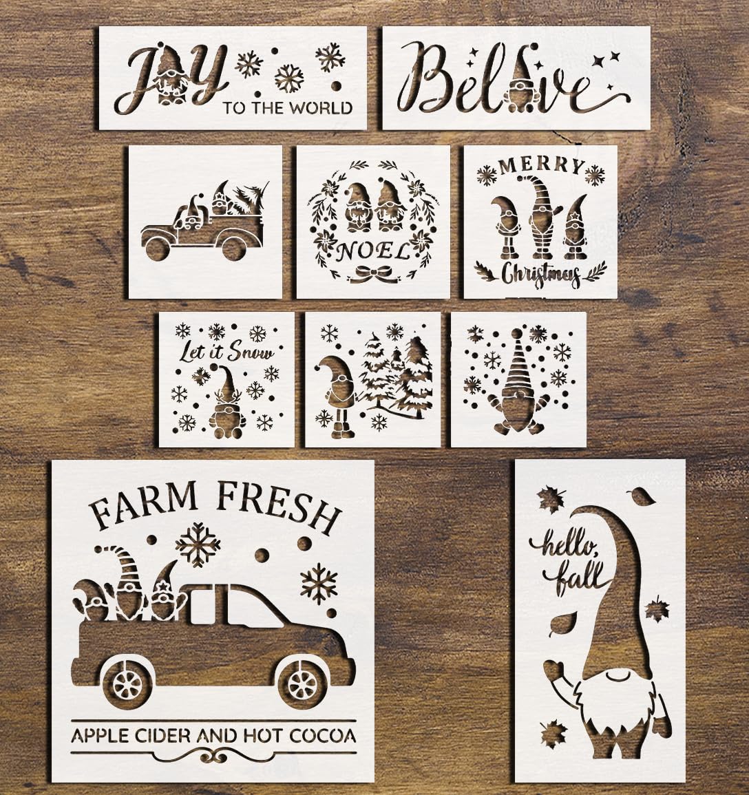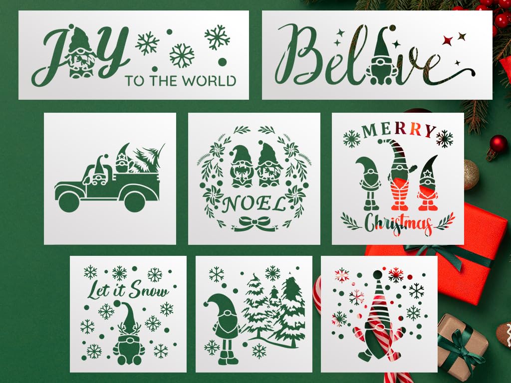 Professional 3-in-1 Gnome Stencil Set – Christmas and Autumn Gnome Designs for DIY Holiday and Seasonal Painting on Wood, Canvas, and Walls – Reusable Templates stencil for creating beautiful designs on various surfaces. Perfect for painting on wood, fabric, walls, and other materials. Reusable and durable for multiple projects.