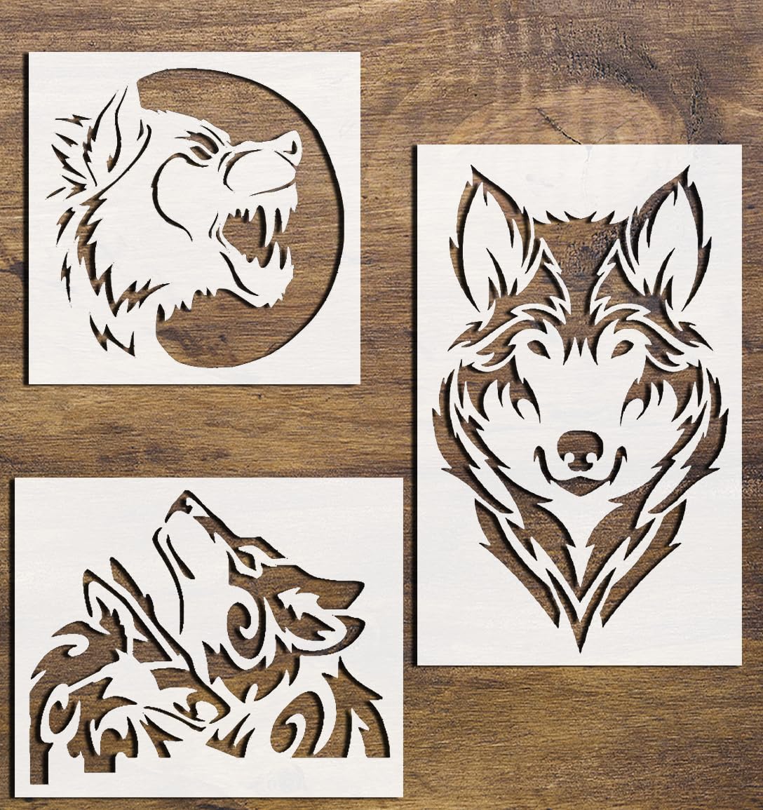 Professional 3-in-1 Wolf Stencil Set – Reusable Wolf and Werewolf Designs for DIY Crafts, Airbrush Painting, and Nature-Inspired Décor – Multiple Sizes stencil for creating beautiful designs on various surfaces. Perfect for painting on wood, fabric, walls, and other materials. Reusable and durable for multiple projects.