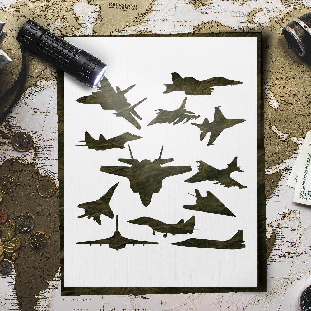 Professional Airforce Fighter Jets Airplanes Stencil – Reusable for Painting on Walls, Wood, DIY Arts and Crafts Projects – LIONX stencil for creating beautiful designs on various surfaces. Perfect for painting on wood, fabric, walls, and other materials. Reusable and durable for multiple projects.