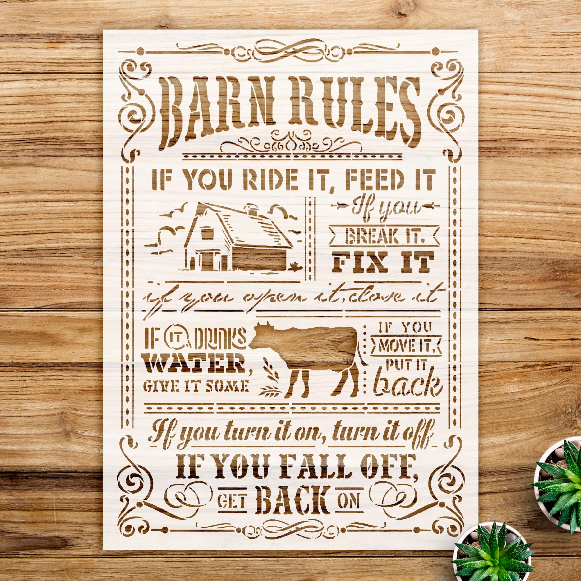 What’s Included One Barn Rules stencil pattern Clear usage instructions for effortless application
