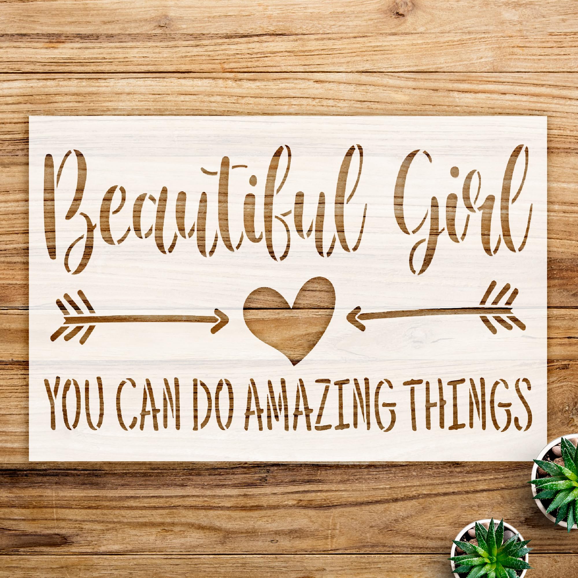 What’s Included One Beautiful Girl Do Amazing Things stencil Instructions for easy application