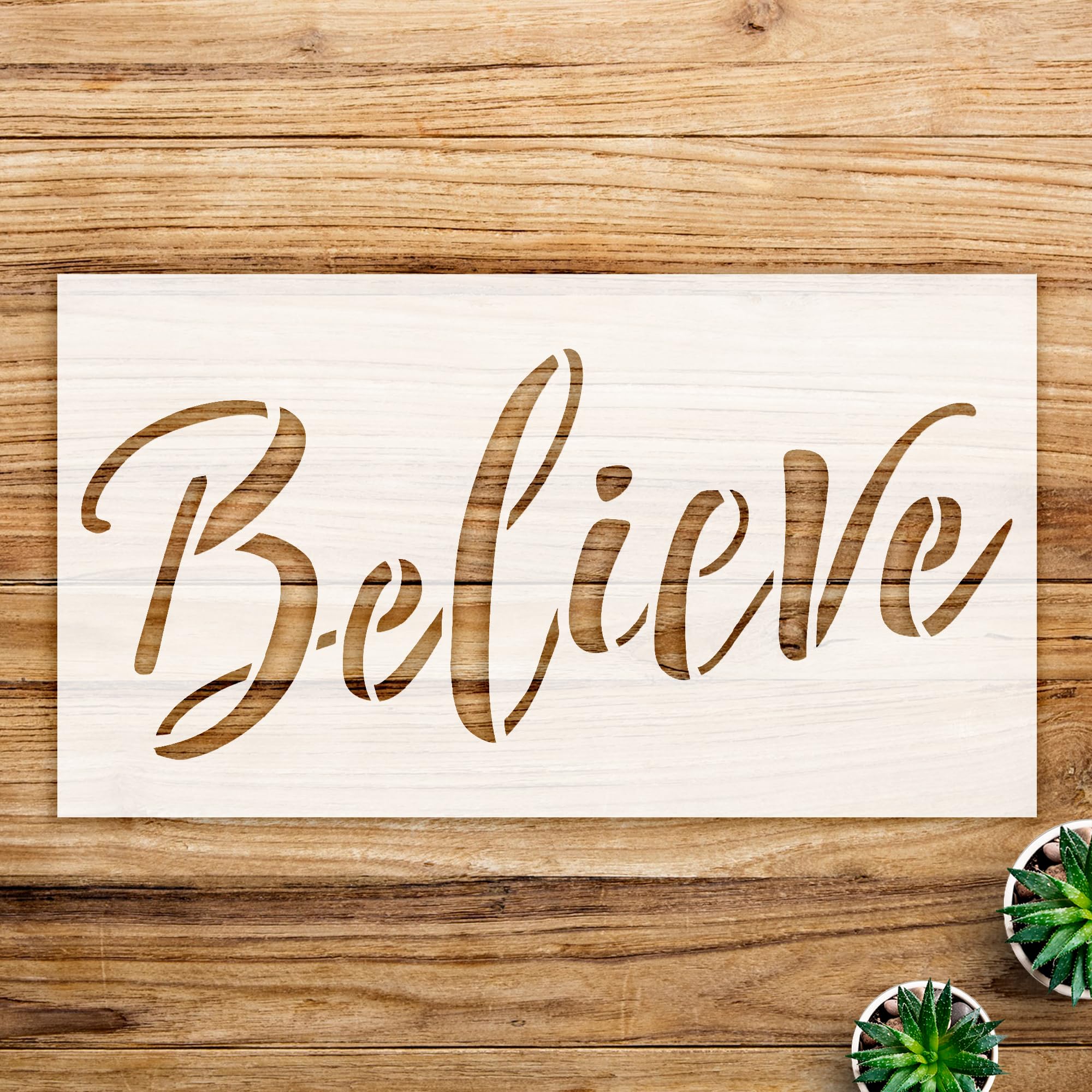 Elevate your winter holiday and Christmas decorations with theBelieve Script Stencilfrom StencilAir. This reusable mylar template is perfect for adding a rustic farmhouse touch to your wood and wall art projects.