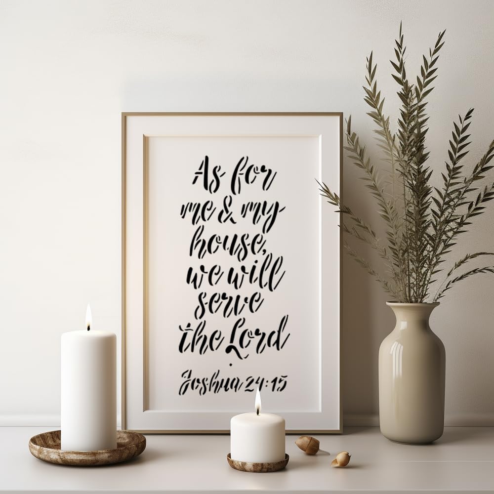 Professional Bible Verse Stencil – “As for Me & My House” Joshua 24:15 – Reusable Scripture Template for DIY Wood Signs, Christian Wall Art, and Faith-Based Home Decor stencil for creating beautiful designs on various surfaces. Perfect for painting on wood, fabric, walls, and other materials. Reusable and durable for multiple projects.