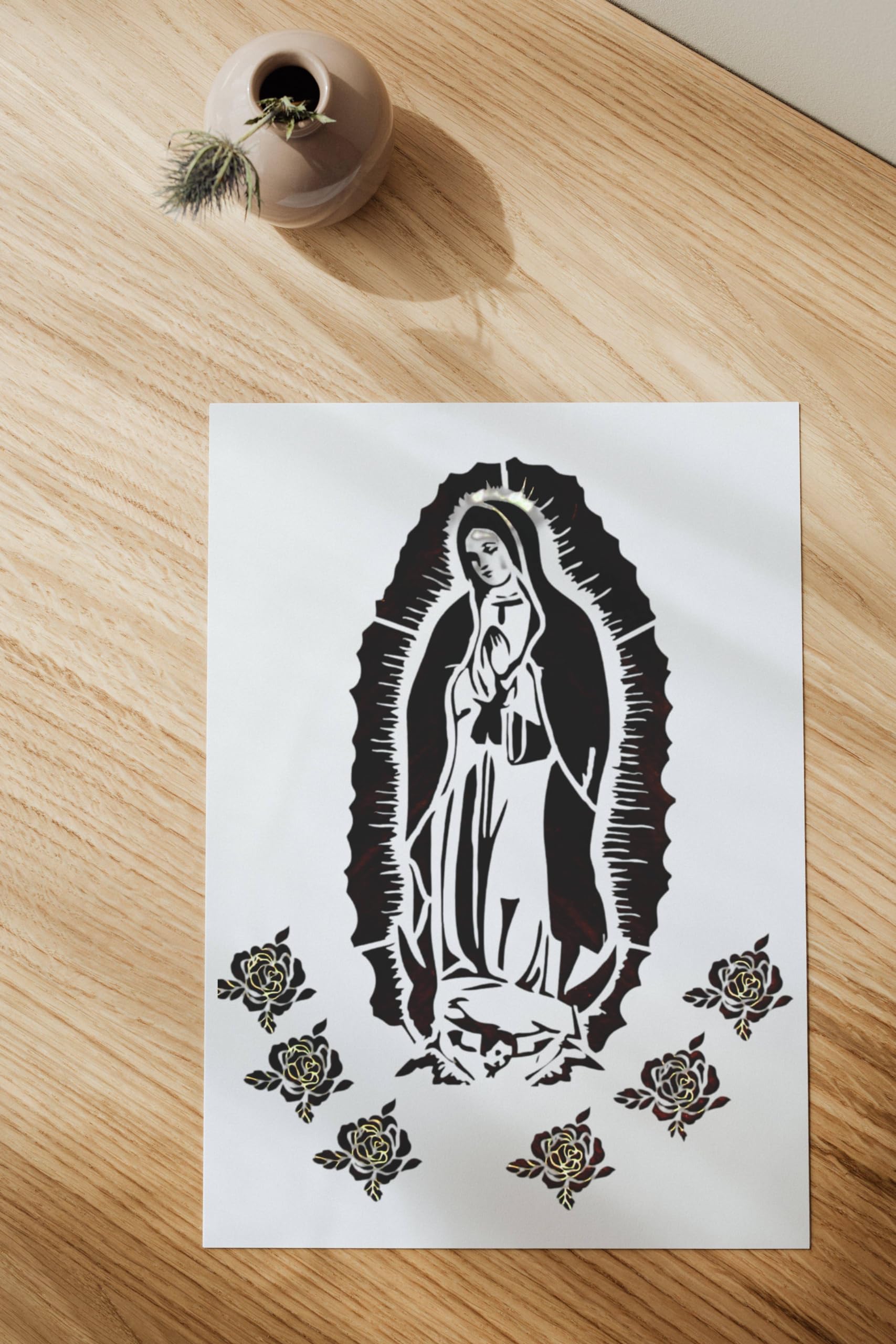 Embrace the opportunity to create devotional artwork with our Blessed Virgin Mary with Roses Stencil/Template, and let the sanctity and grace of the Virgin Mary inspire your next masterpiece. It’s more than just an art supply; it’s a gateway to crafting pieces that celebrate and honor spiritual beauty and faith.
