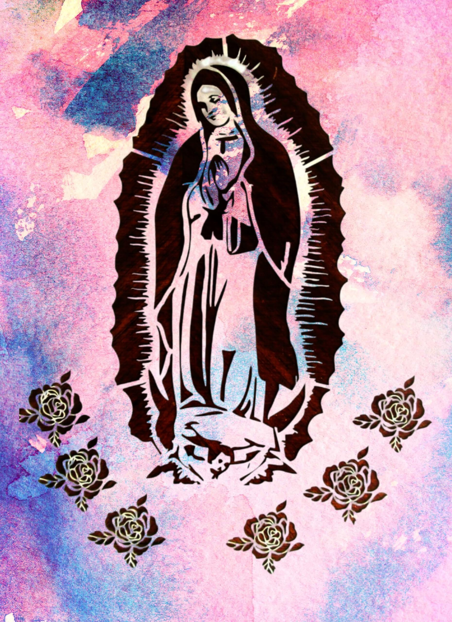 • Sacred Design: Features the Blessed Virgin Mary adorned with roses, perfect for spiritual and religious-themed art projects.