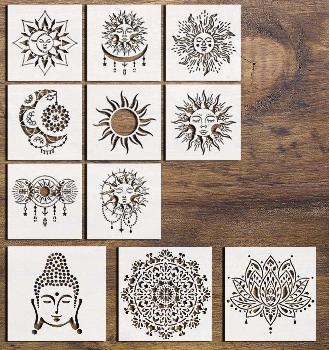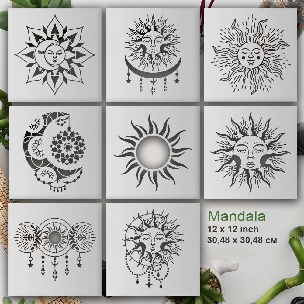• Complete Stencil Bundle: Features Buddha, lotus flower, and bliss mandala stencils, plus an 8-piece set of sun and moon mandalas.