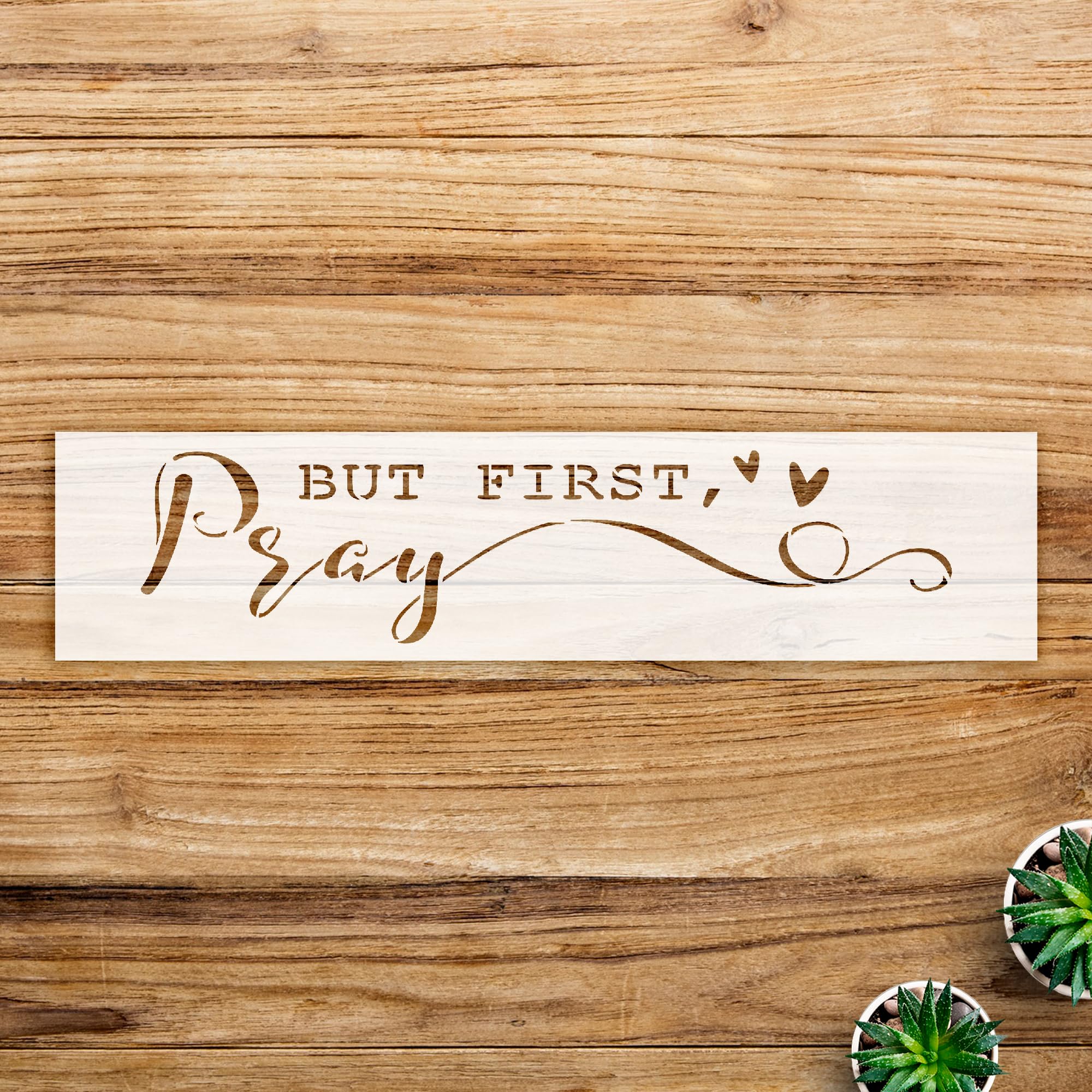 Elevate your home with theBut First Pray Stencilfrom StencilAir. This reusable mylar template is perfect for creating beautiful wood signs and wall art that reflect your Christian faith.