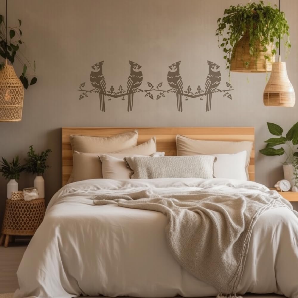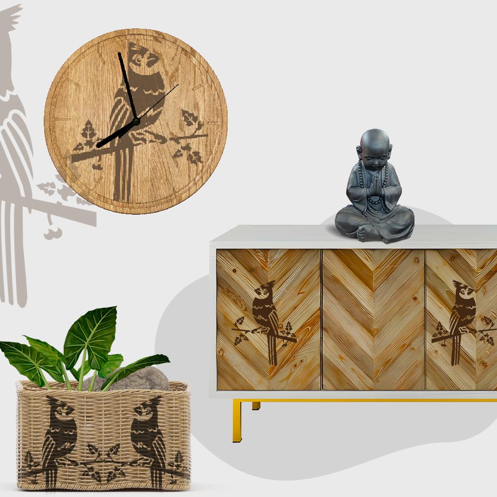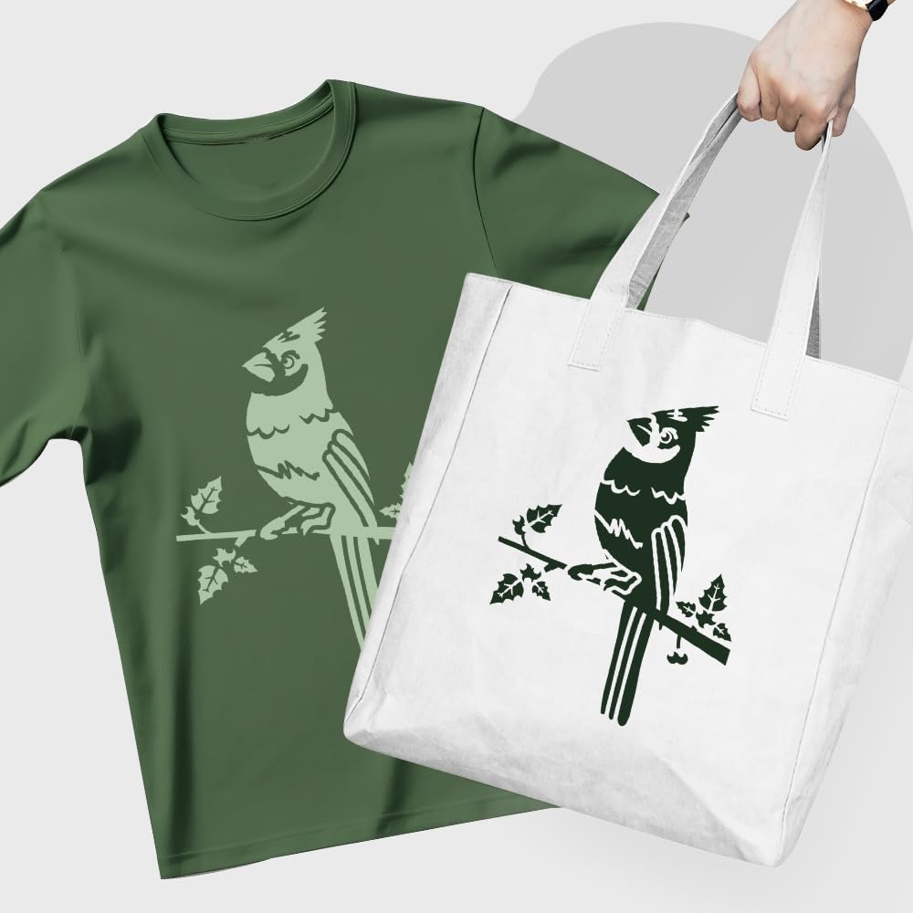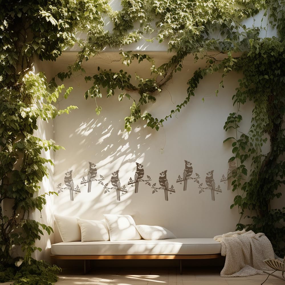 • Cardinals on Branches: The stencil features a realistic Cardinal bird perched on a tree branch, adding a touch of nature’s grace to your projects.