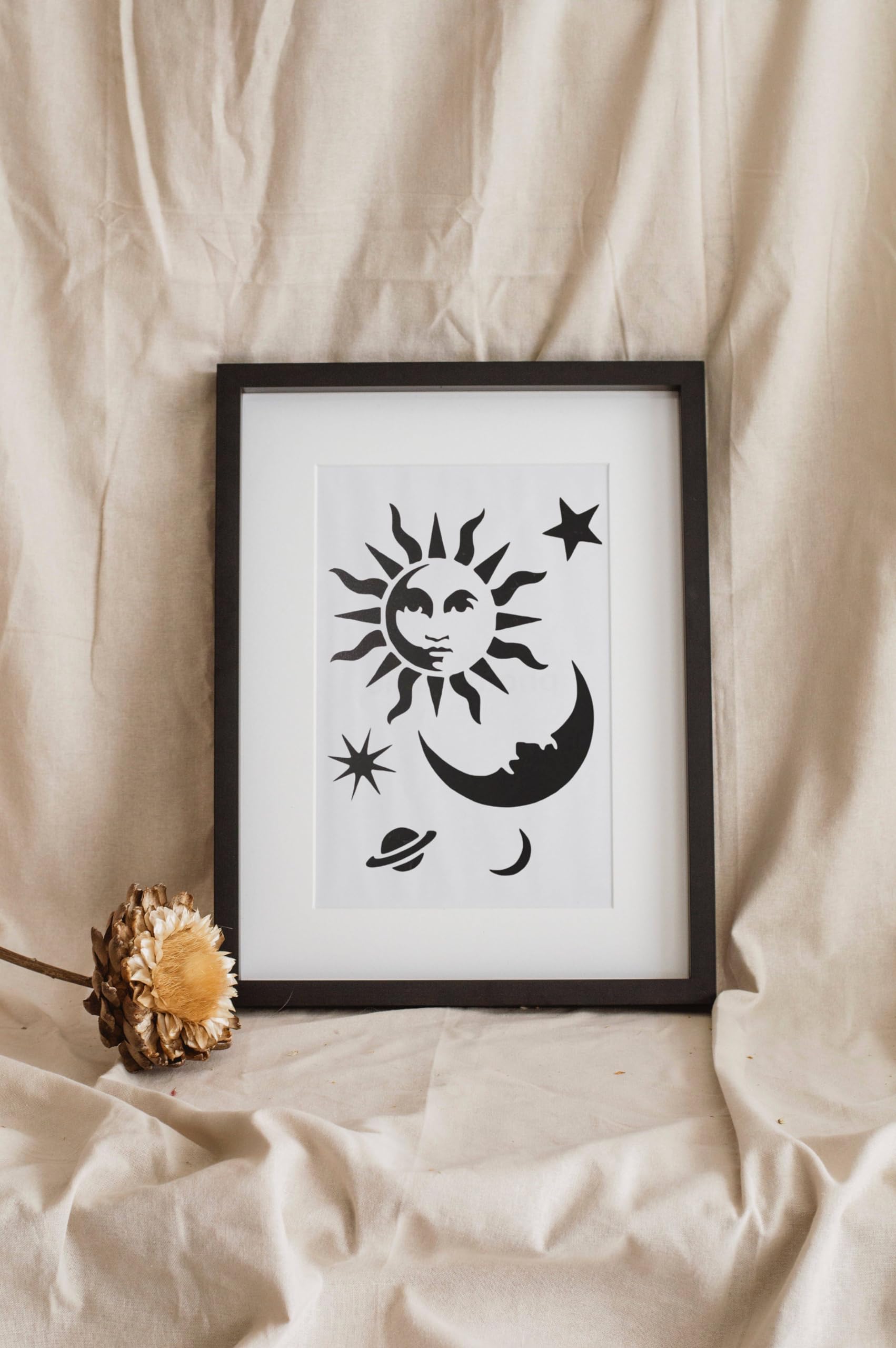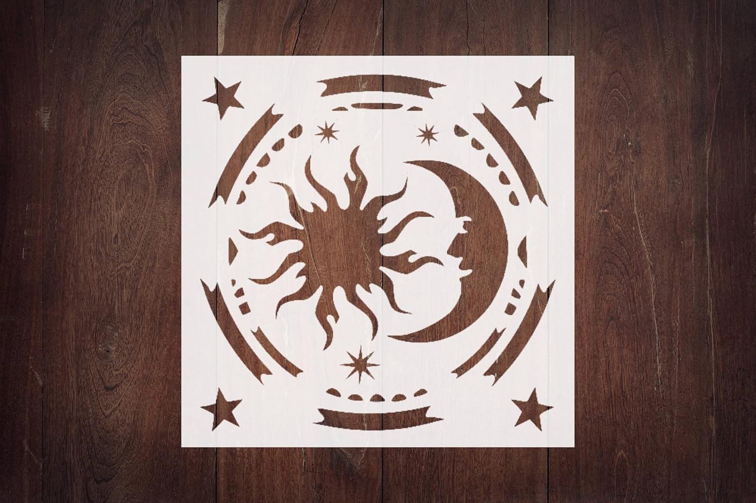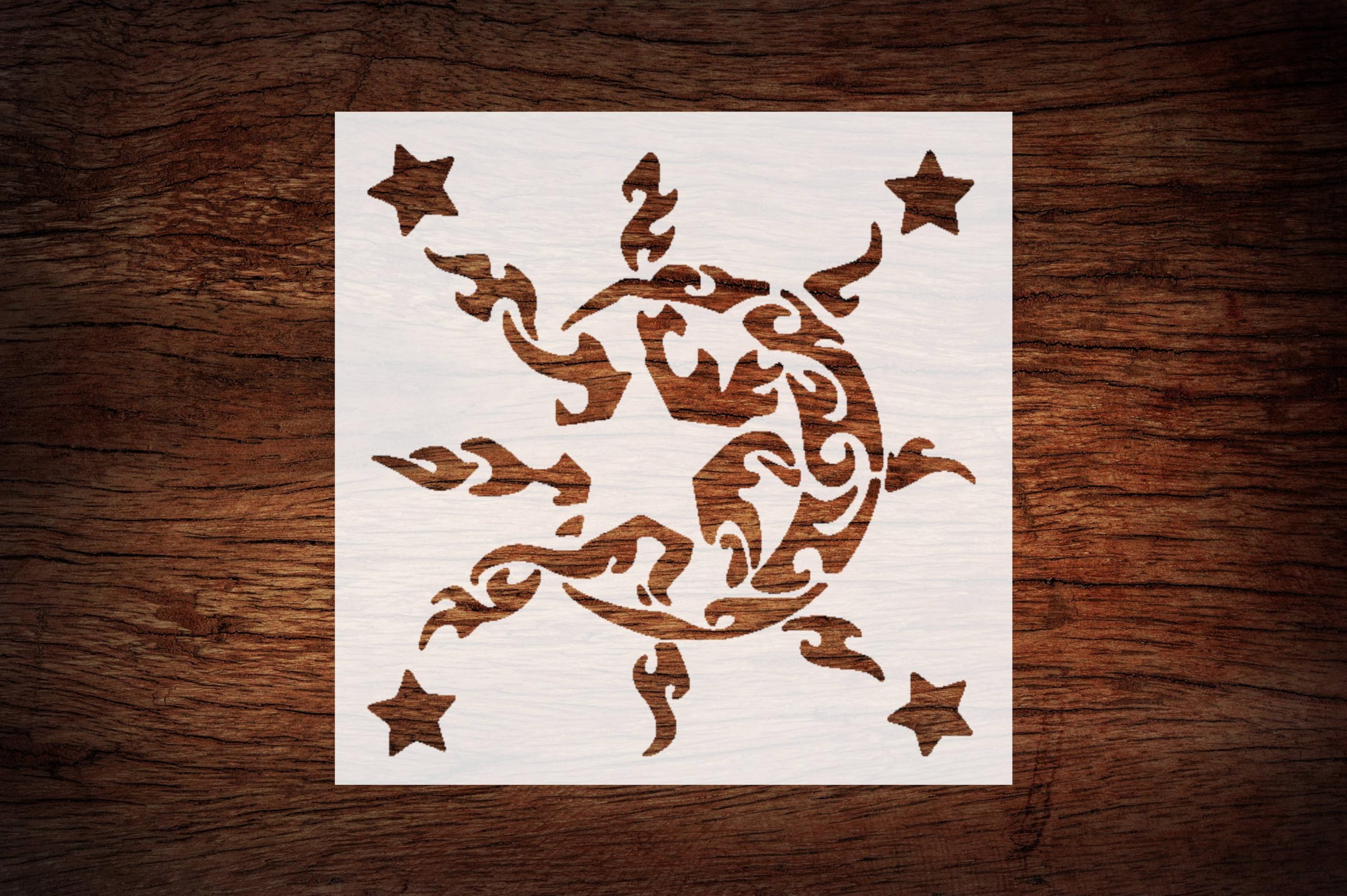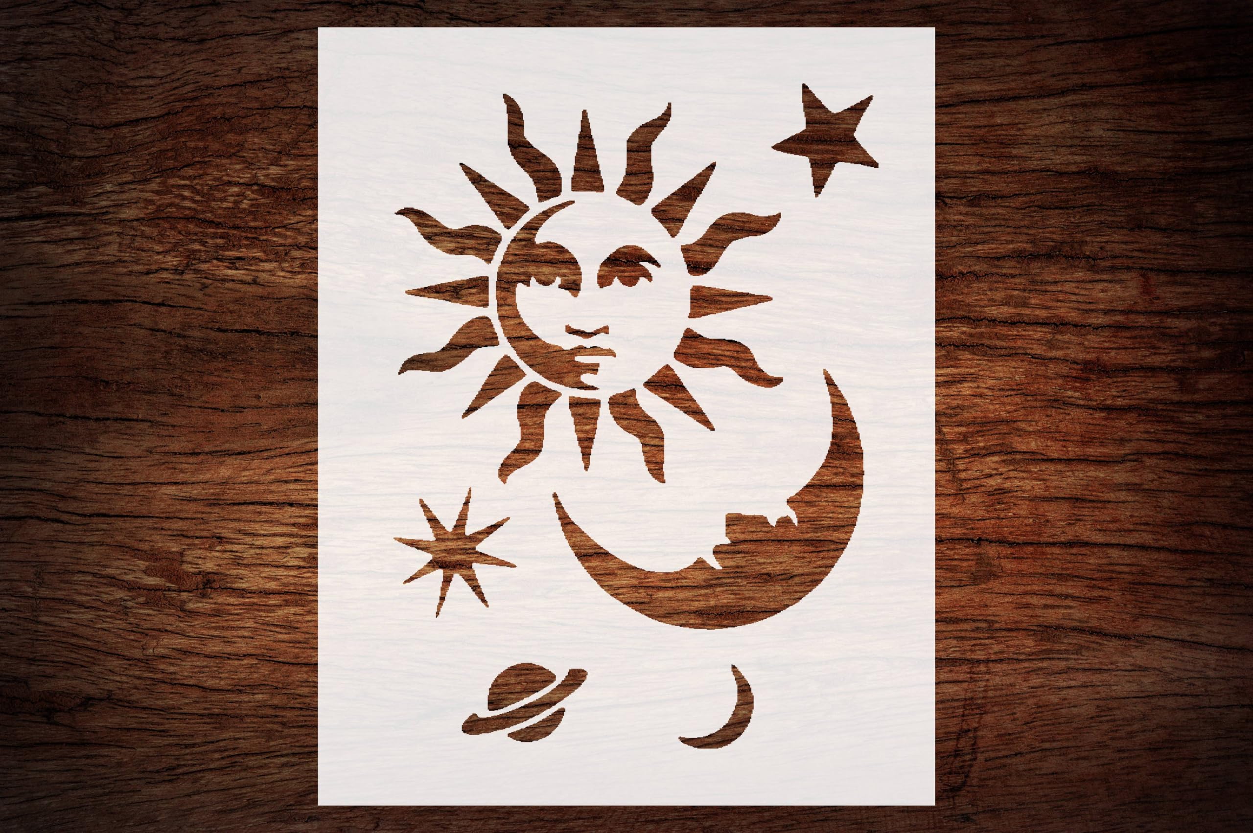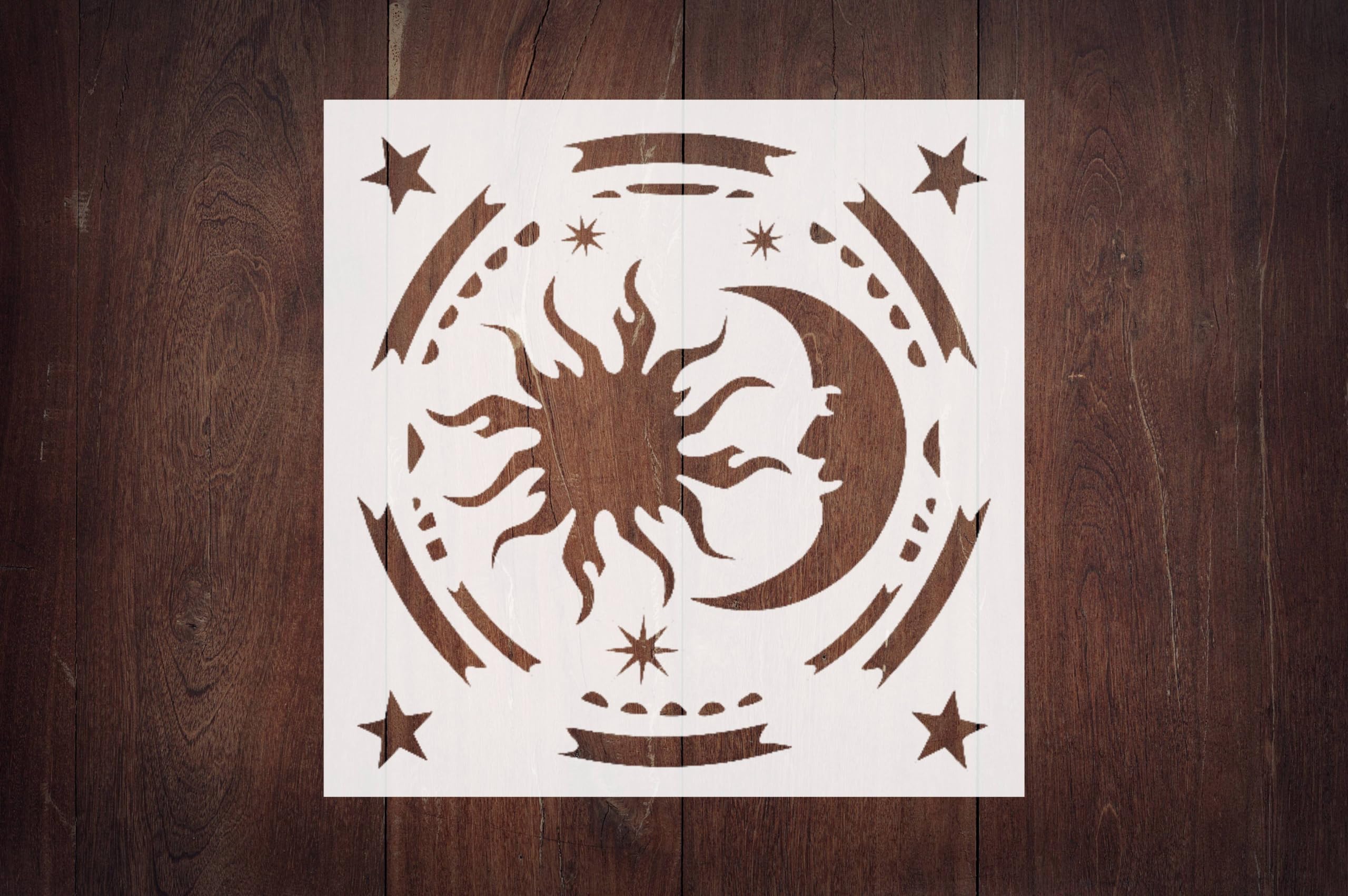 • Complete Celestial & Wolf Stencil Bundle: Features Stars & Moon Wiccan stencil, Celestial Sun and Moon board, Moon & Star stencil, Wildlife Wolf stencil, and Werewolf stencil for creative projects.