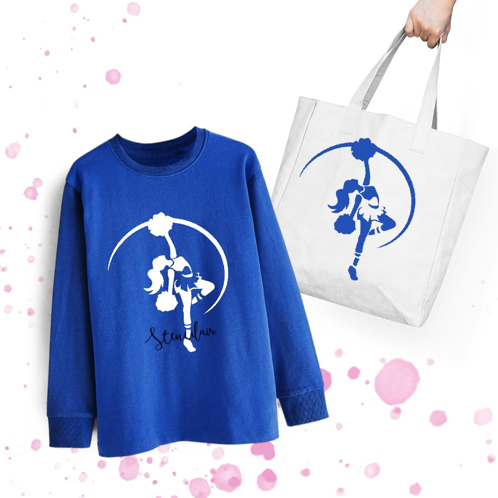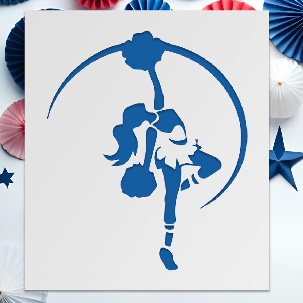 Professional Cheerleader Stencil – Reusable Spirit Team Template for DIY Crafts, T-Shirts, School Posters, Pep Rallies & Sports Decor – Jumping Silhouette with Pom-Poms stencil for creating beautiful designs on various surfaces. Perfect for painting on wood, fabric, walls, and other materials. Reusable and durable for multiple projects.