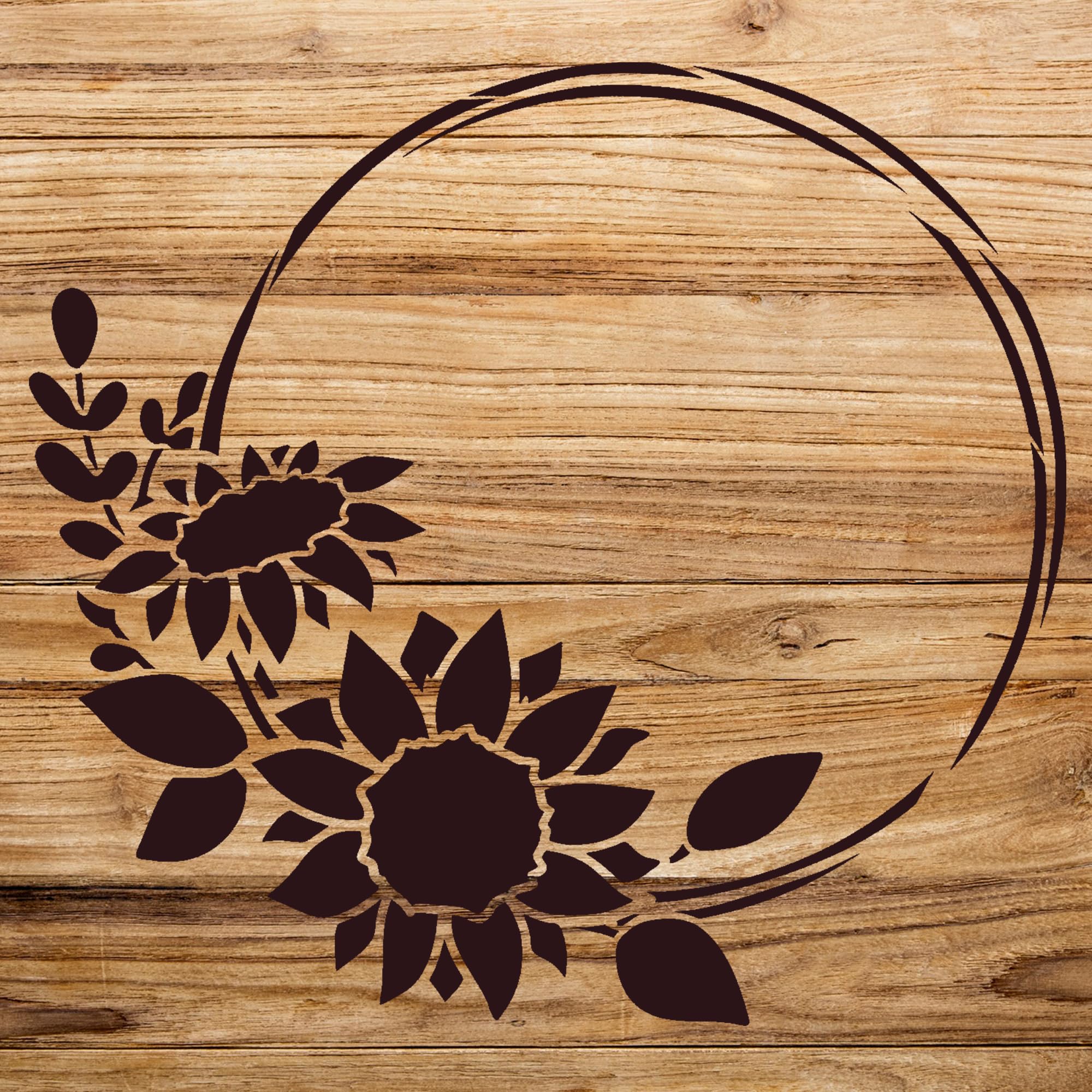 What’s Included One Circular Sunflower Geometric Monogram Frame stencil Usage instructions
