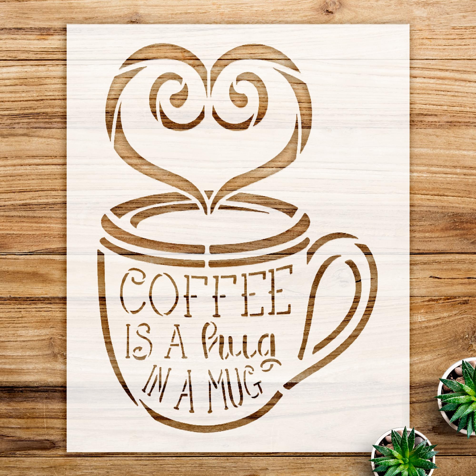 Available in multiple sizes to suit various projects, this stencil is an ideal choice for DIY enthusiasts, home decorators, and anyone looking to add a personal touch to their coffee-themed decor.