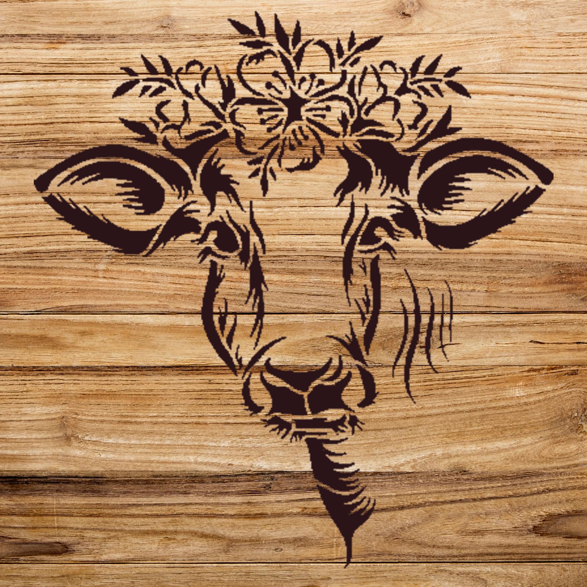 Unleash your creativity with theCow Head Stencil with Flower Crownfrom StencilAir. This reusable mylar template is perfect for adding a rustic touch to your wood and wall art projects.