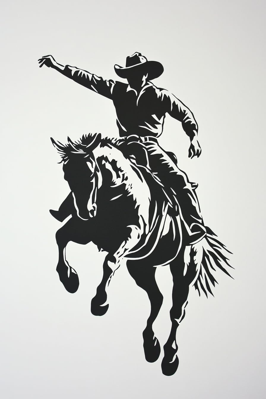 • Western Cowboy Design: Bring the spirit of the wild west to your projects with a dynamic cowboy riding a bucking horse, perfect for rustic and western-themed decor.