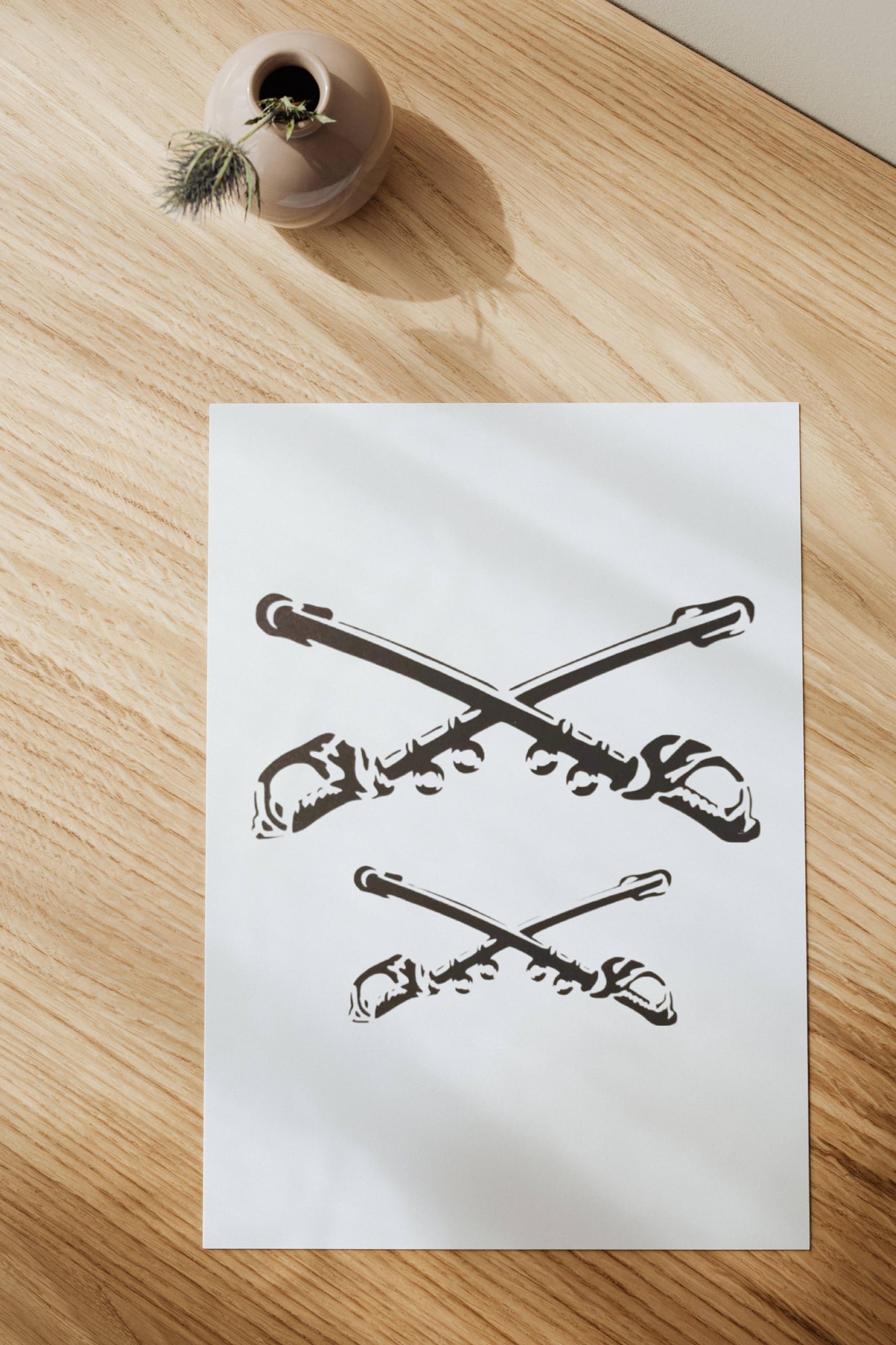 Professional Crossed Swords Sabres Stencil, Reusable & Sturdy, , Custom Art & Craft Template stencil for creating beautiful designs on various surfaces. Perfect for painting on wood, fabric, walls, and other materials. Reusable and durable for multiple projects.