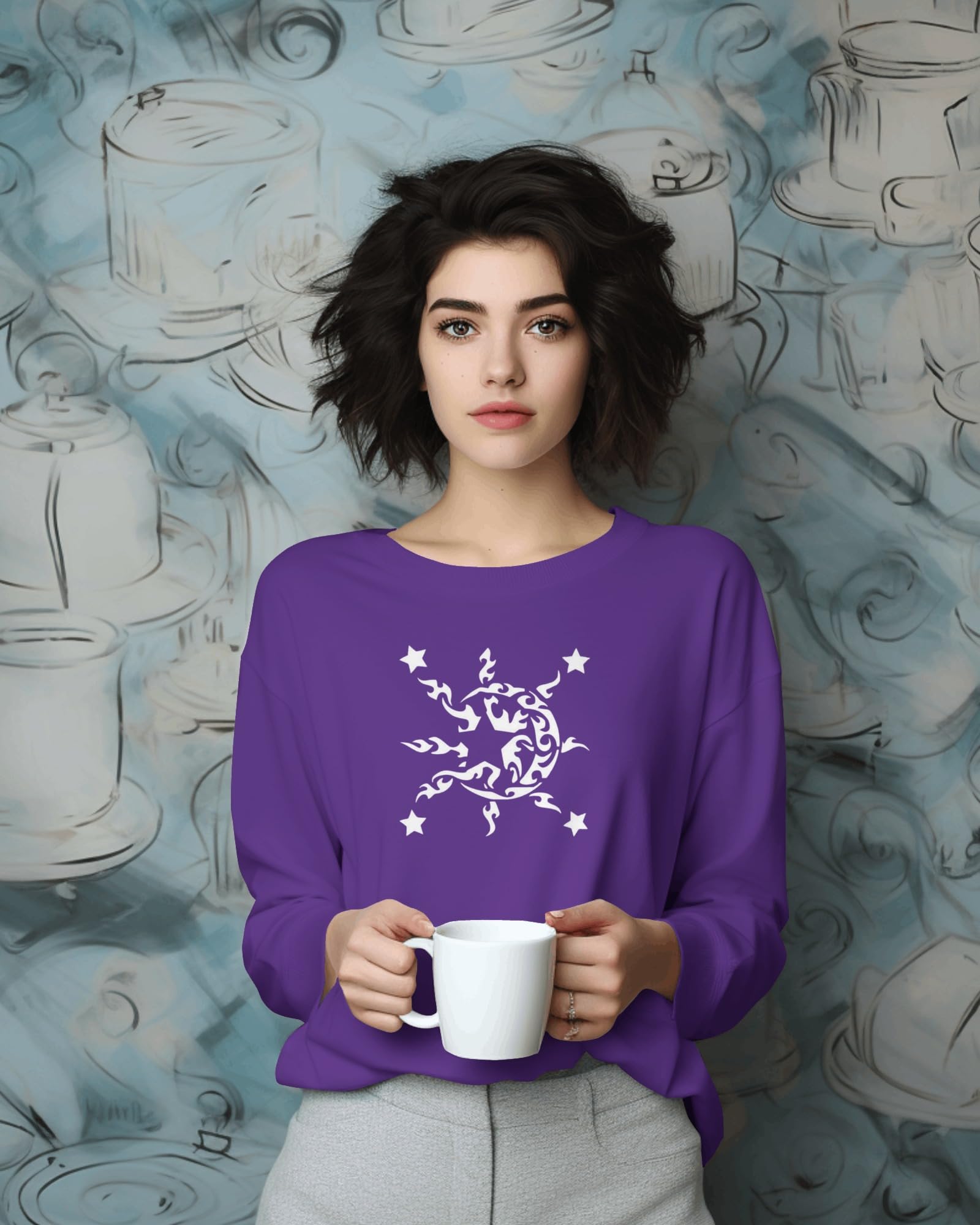 • Mystical Celestial Design featuring a moon and stars for cosmic-inspired projects.
