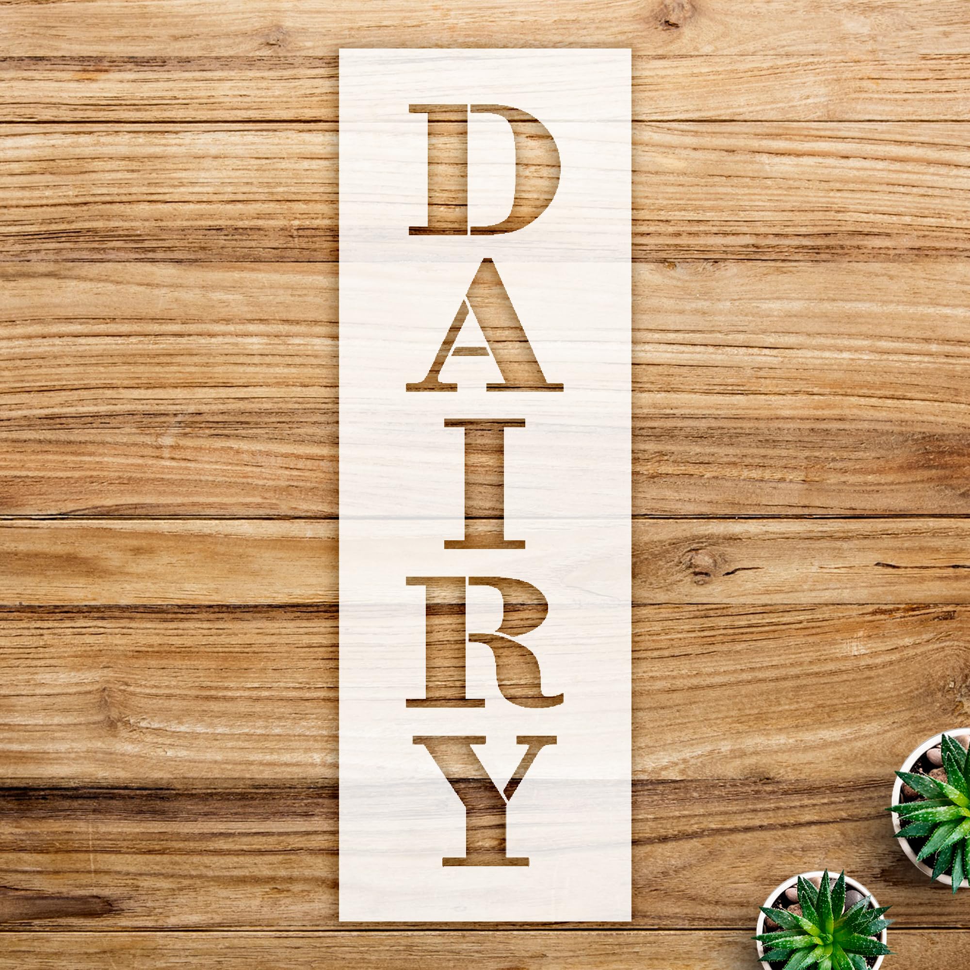 Professional Dairy Farmhouse Vertical Word Stencil for Walls and Crafts, Reusable Mylar Template, Ideal for Home Decor and Rustic Projects – Size A2 () stencil for creating beautiful designs on various surfaces. Perfect for painting on wood, fabric, walls, and other materials. Reusable and durable for multiple projects.
