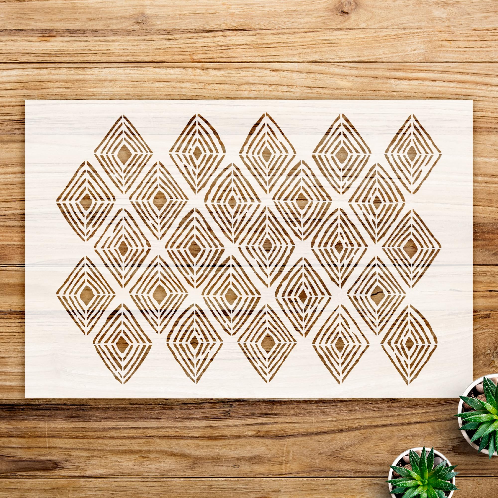 Elevate your home decor with theDiamond Ikat Pattern Stencilfrom StencilAir. This reusable mylar template is perfect for adding a boho touch to walls, furniture, and various craft projects.