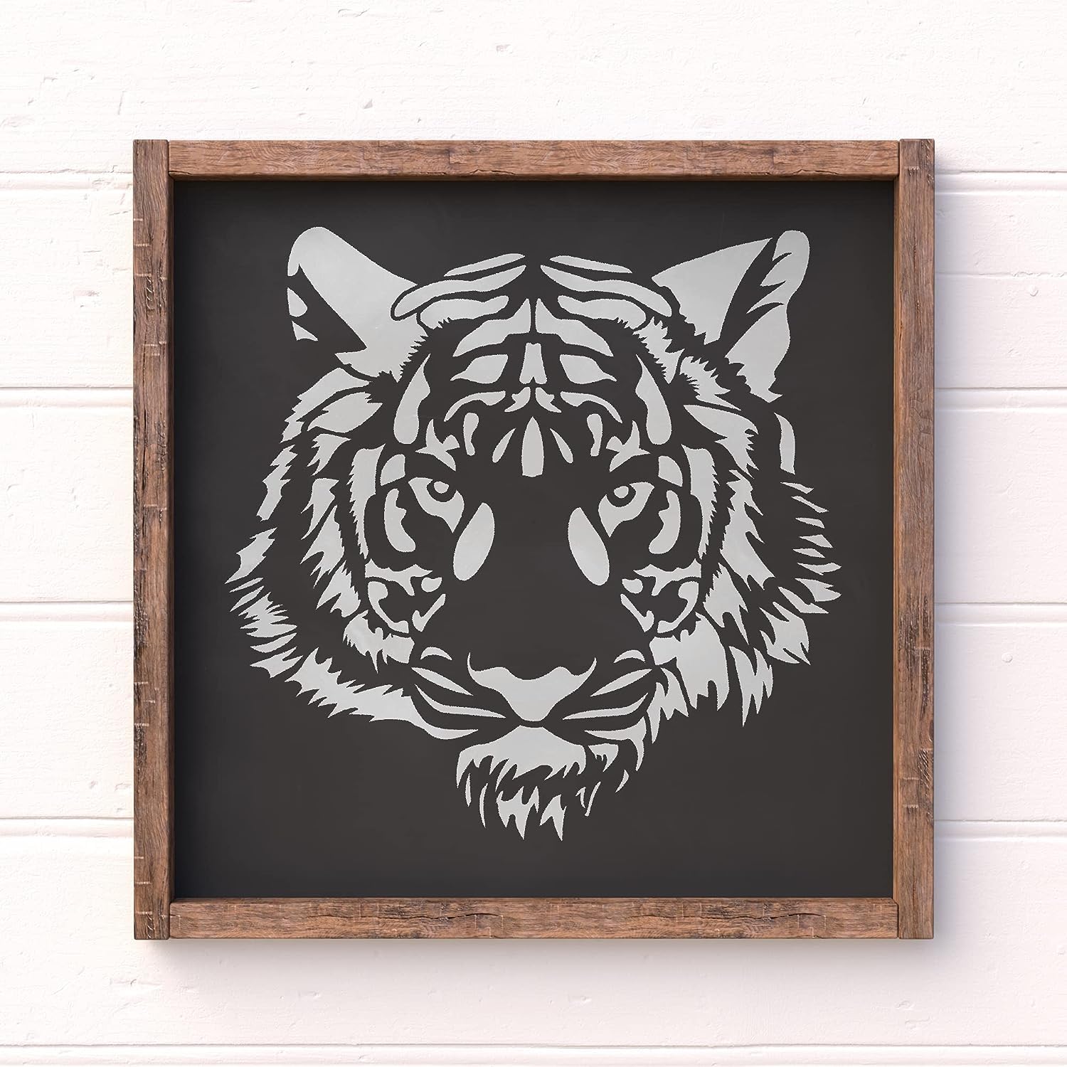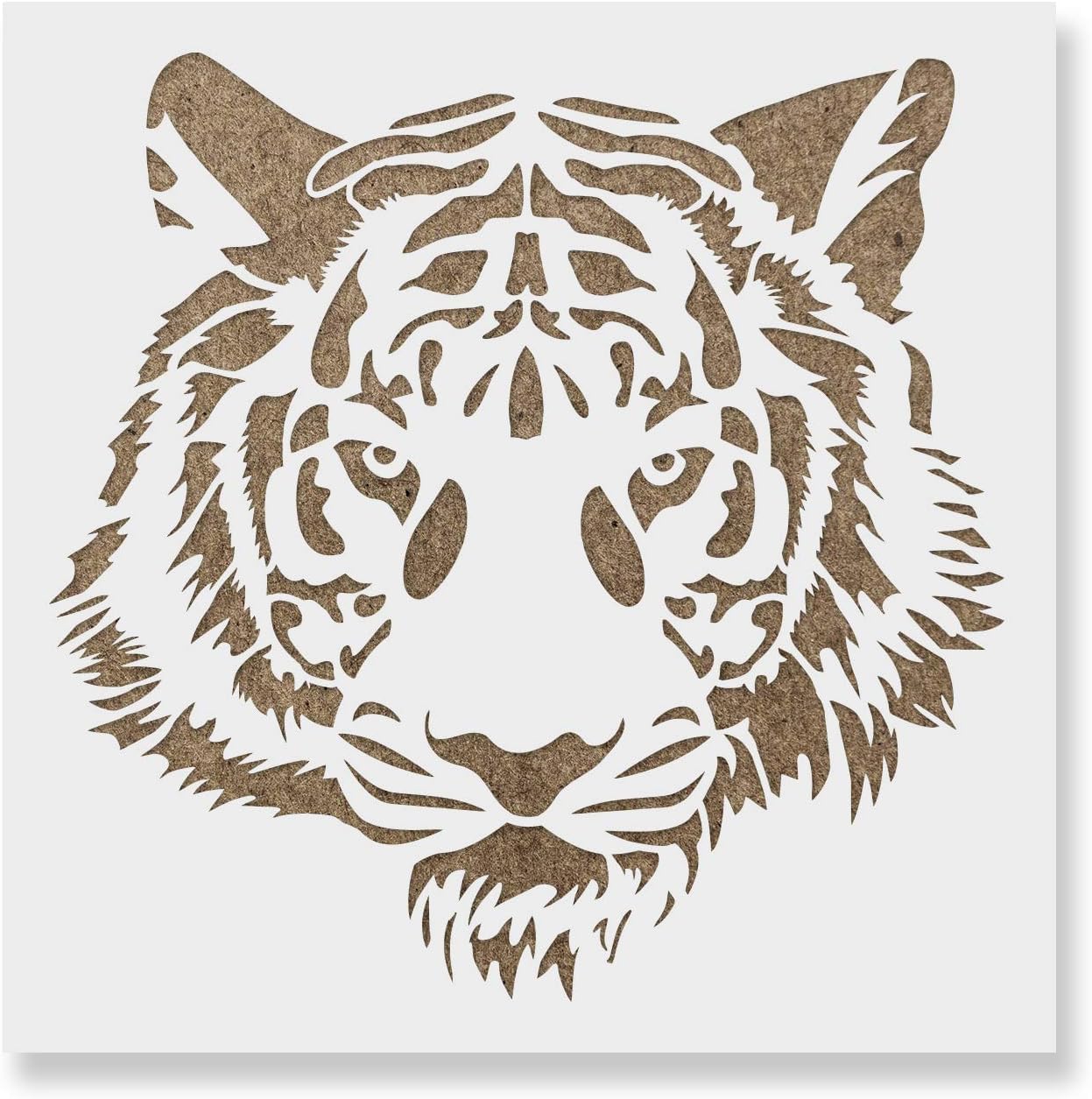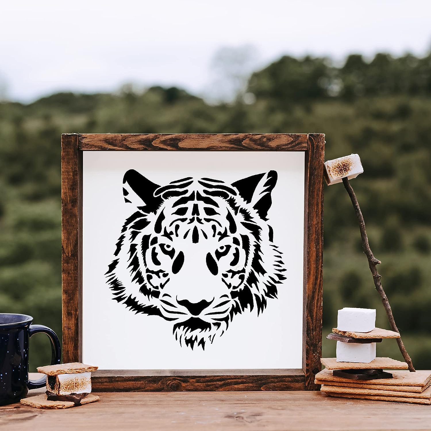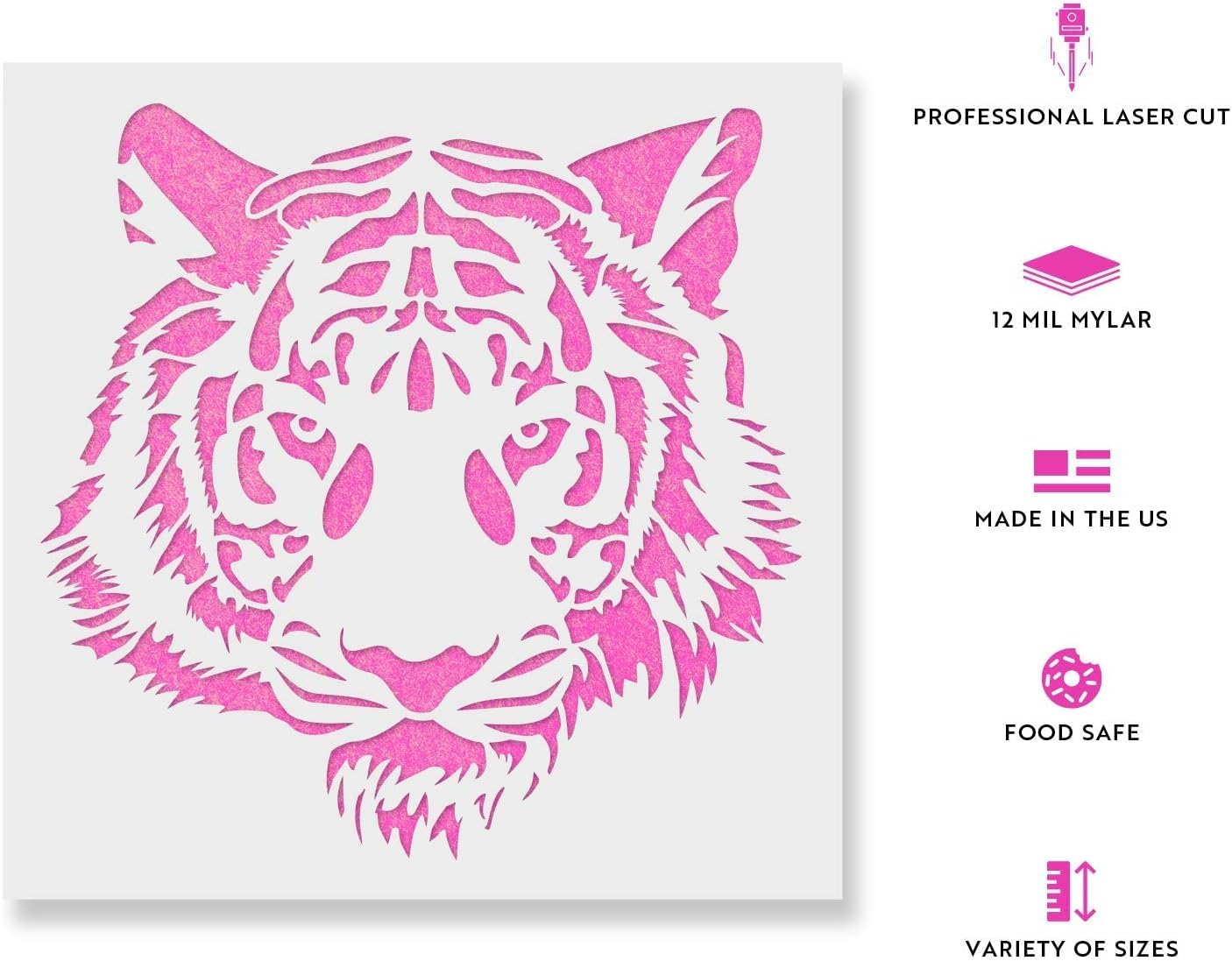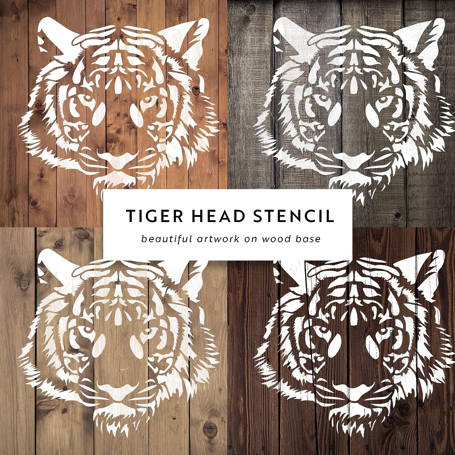 Professional DIY Tiger Head Crafts and Decor with Reusable Tiger Head Stencil for Painting Durable Mylar Material DIY Crafts, Decor LIONX stencil for creating beautiful designs on various surfaces. Perfect for painting on wood, fabric, walls, and other materials. Reusable and durable for multiple projects.