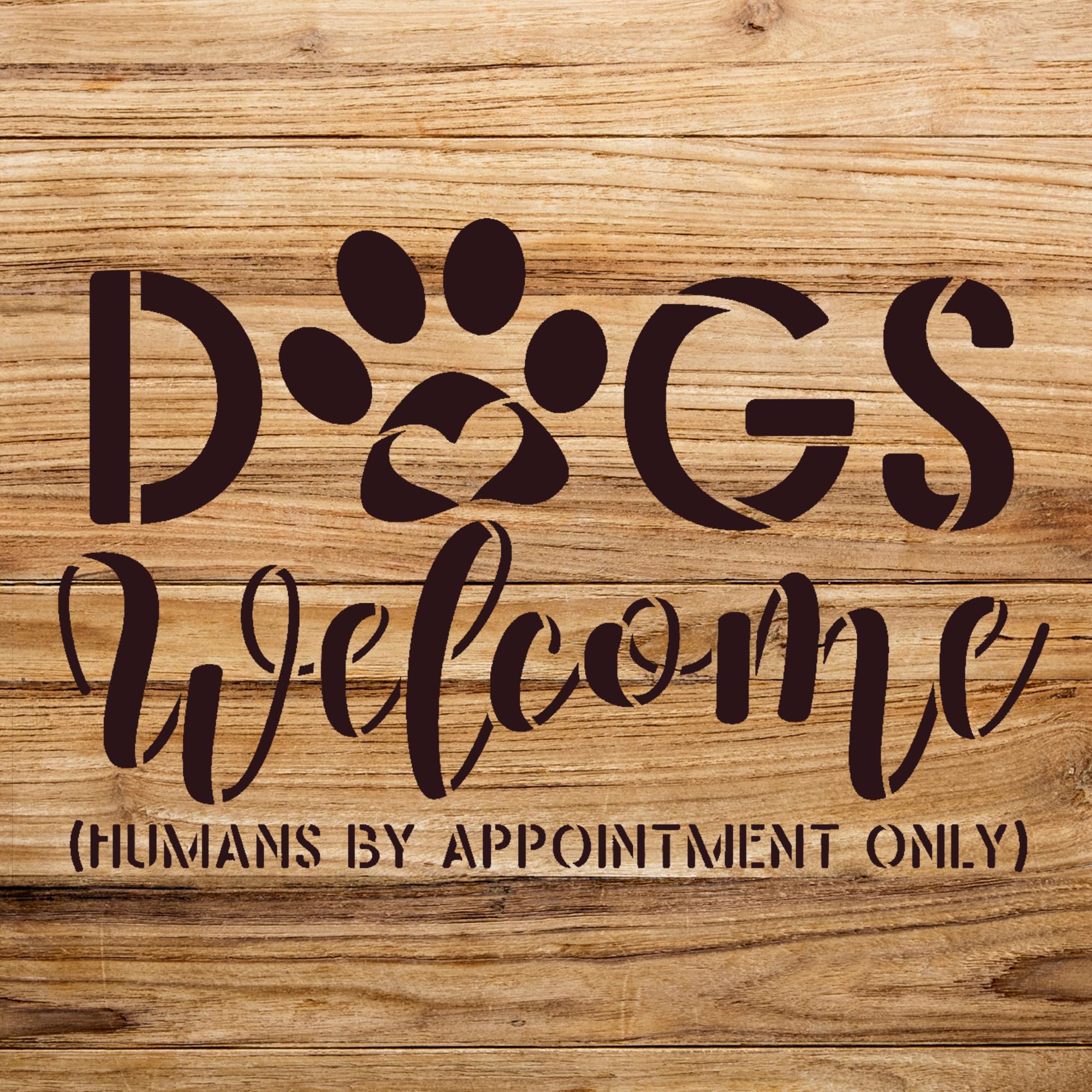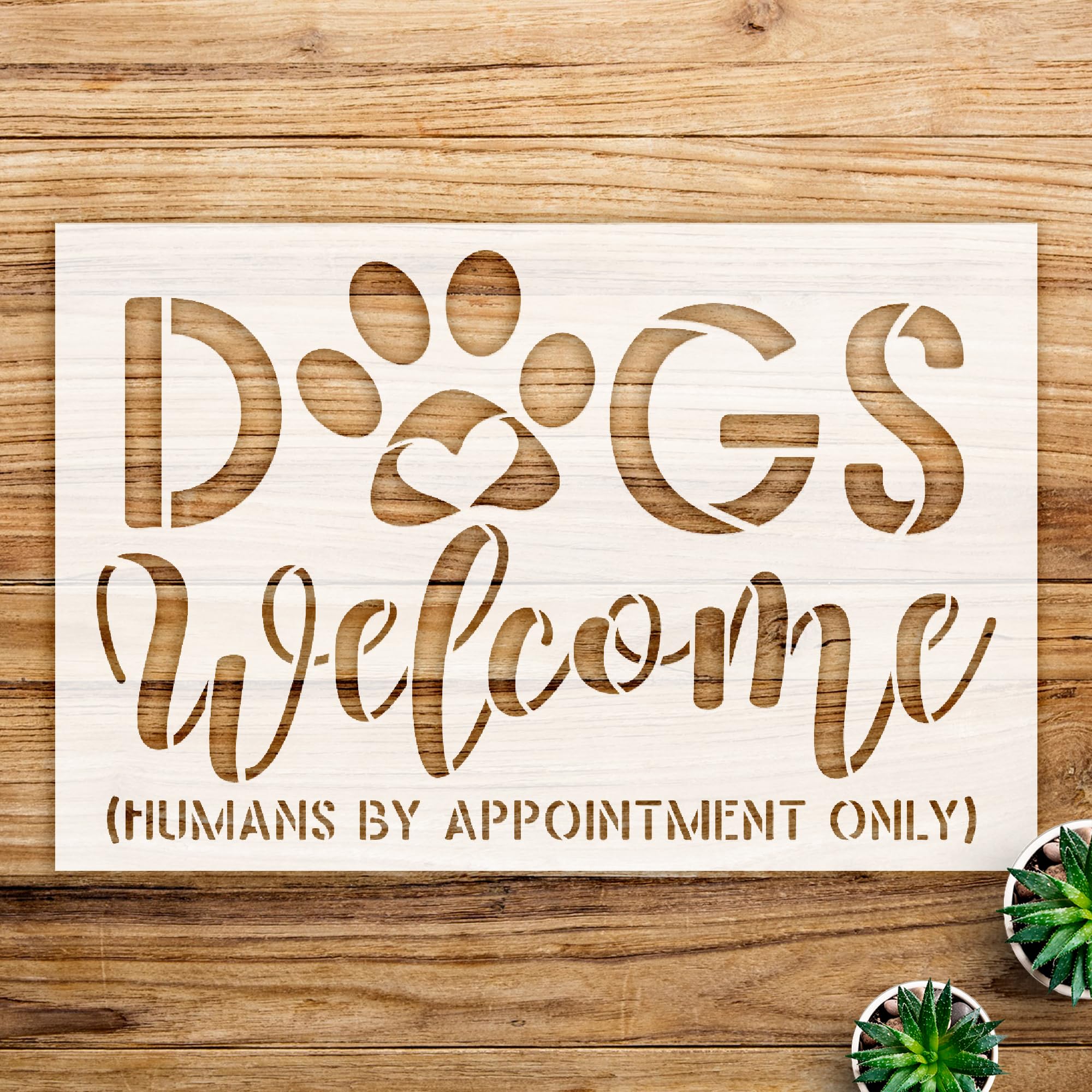 Enhance your home with theDogs Welcome Stencilfrom StencilAir. This charming stencil features a humorous script design paired with a playful paw print, making it ideal for doormats and a variety of craft projects.