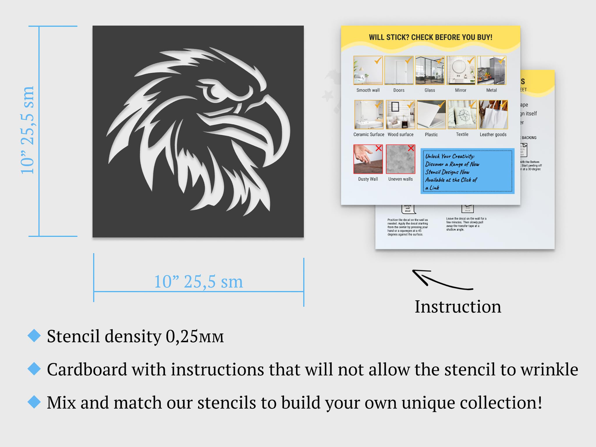 Professional Eagle Stencil () – Reusable DIY Stencil for Painting on Wood, Canvas, Fabric, Walls & Furniture – Home Decor & Craft Template stencil for creating beautiful designs on various surfaces. Perfect for painting on wood, fabric, walls, and other materials. Reusable and durable for multiple projects.