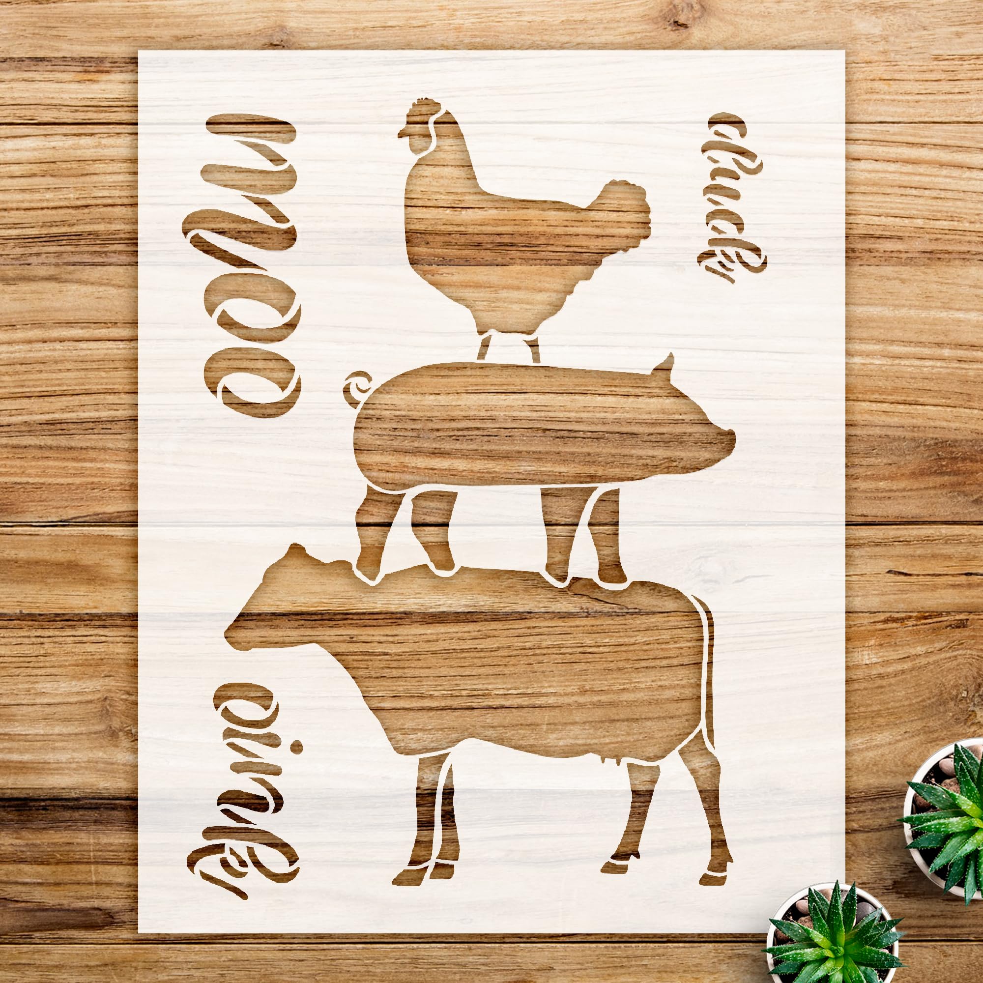 Bring a touch of rustic charm to your home with theFarm Animal Stencil Patternfrom StencilAir. This reusable mylar template features delightful designs of a chicken, pig, and cow, making it ideal for a variety of DIY home decor projects.