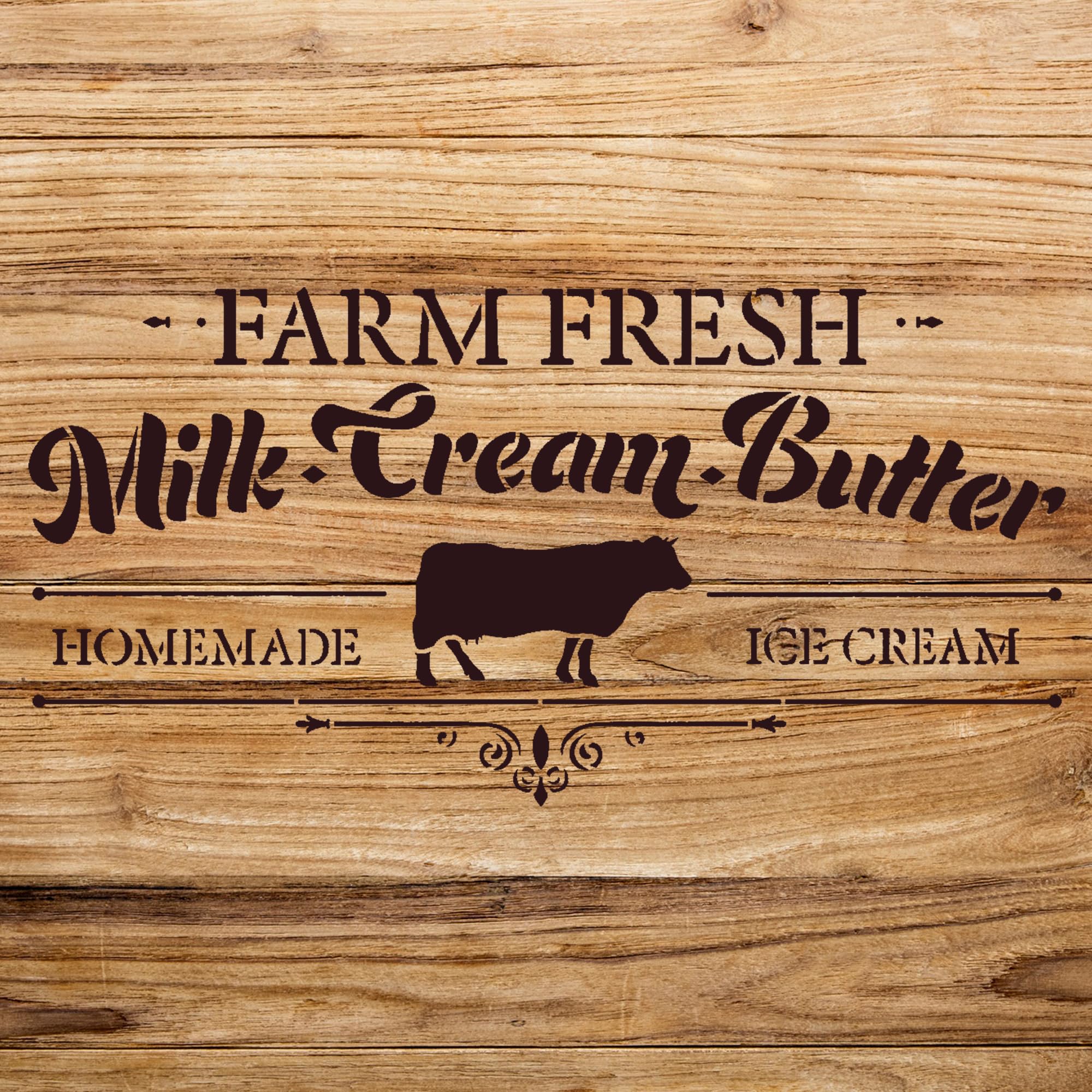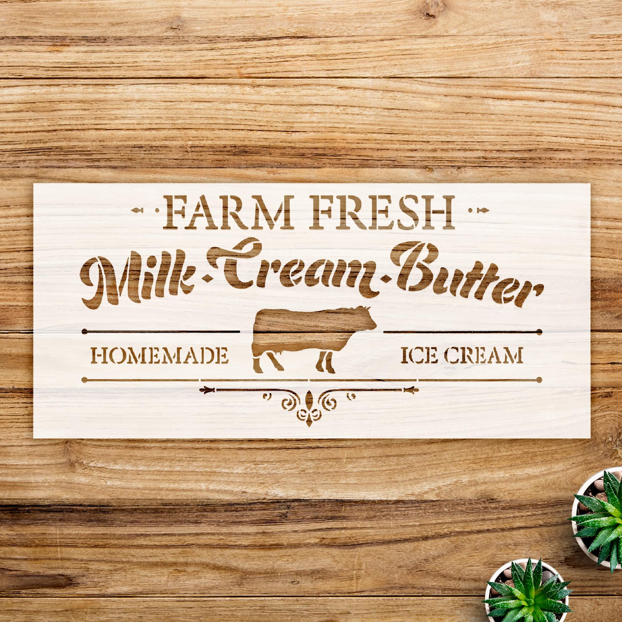 Professional Farm Fresh Milk Cream Stencil for Walls and Crafts, Reusable Mylar Template, Rustic Farmhouse Kitchen Decor, Ideal for Painting and DIY Projects – Size A3 () stencil for creating beautiful designs on various surfaces. Perfect for painting on wood, fabric, walls, and other materials. Reusable and durable for multiple projects.