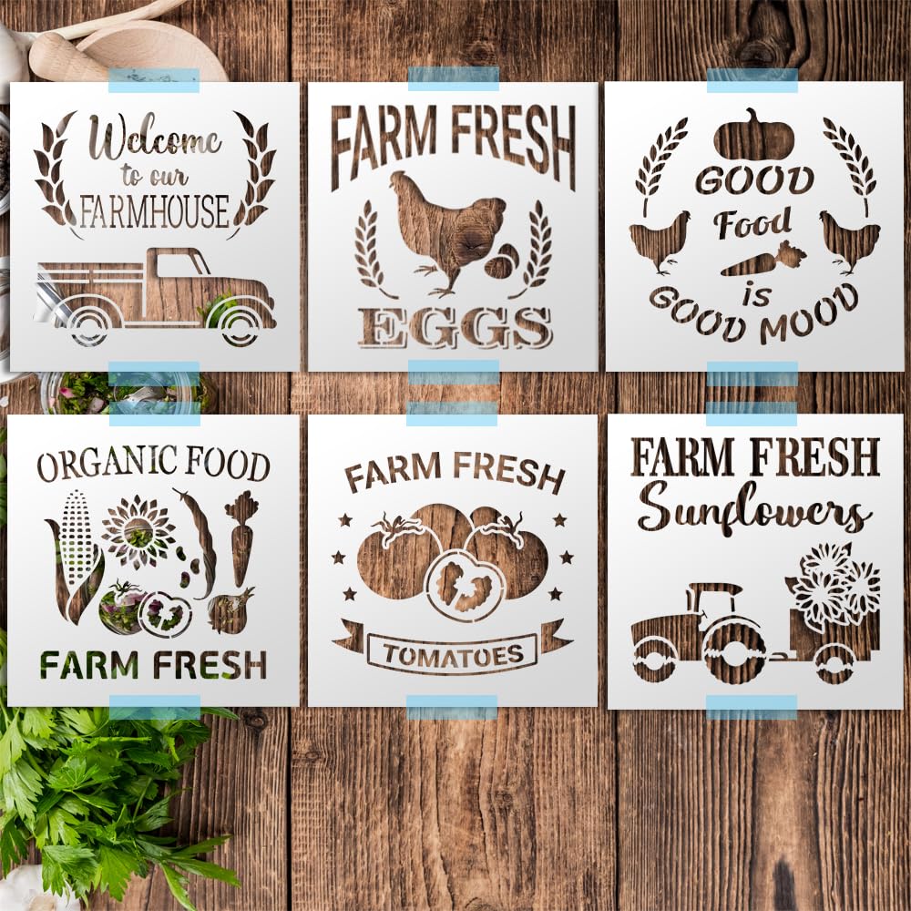 Professional Farm Fresh Stencil Set 6-Pack Reusable Farmhouse Stencils for Painting Wood, Signs & Crafts – Rustic Country DIY Decor Templates stencil for creating beautiful designs on various surfaces. Perfect for painting on wood, fabric, walls, and other materials. Reusable and durable for multiple projects.