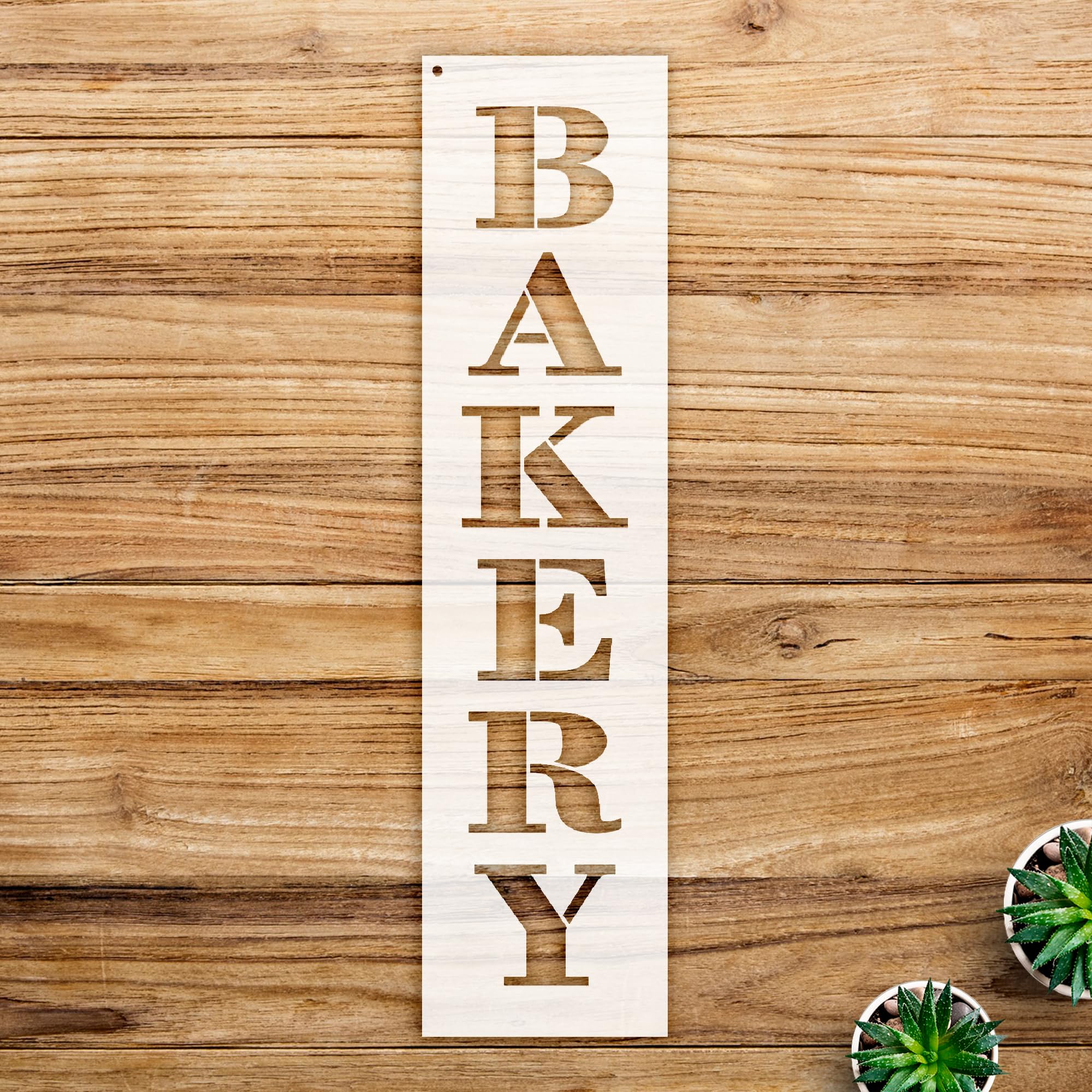 Enhance your home decor with theFarmhouse Bakery Word Stencilfrom StencilAir. This reusable mylar template features a charming vertical design, perfect for adding a rustic touch to your walls and various craft projects.