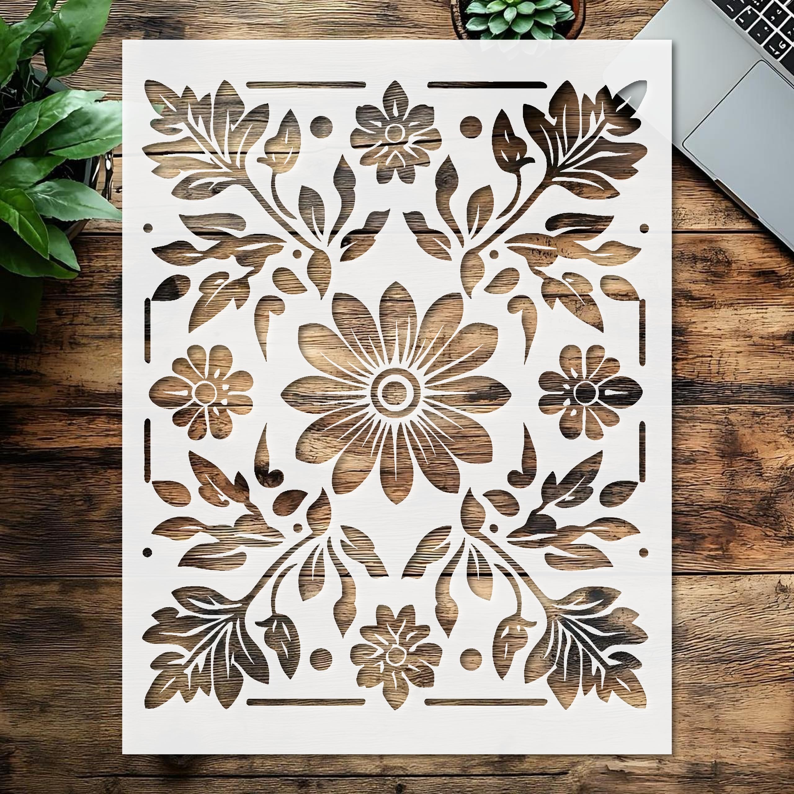 Professional Floral Symmetrical Patterns Stencil, , Reusable, Ideal for Painting and Craft Projects stencil for creating beautiful designs on various surfaces. Perfect for painting on wood, fabric, walls, and other materials. Reusable and durable for multiple projects.