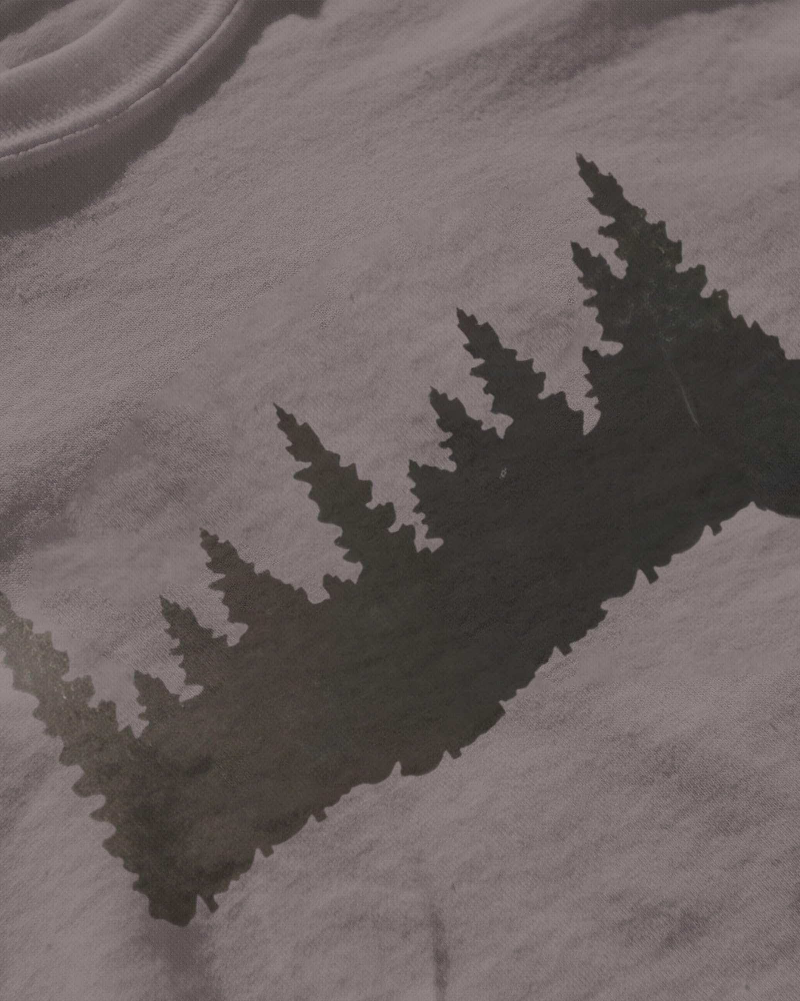 • Captivating Nature Design featuring a serene forest line and smokey mountains.