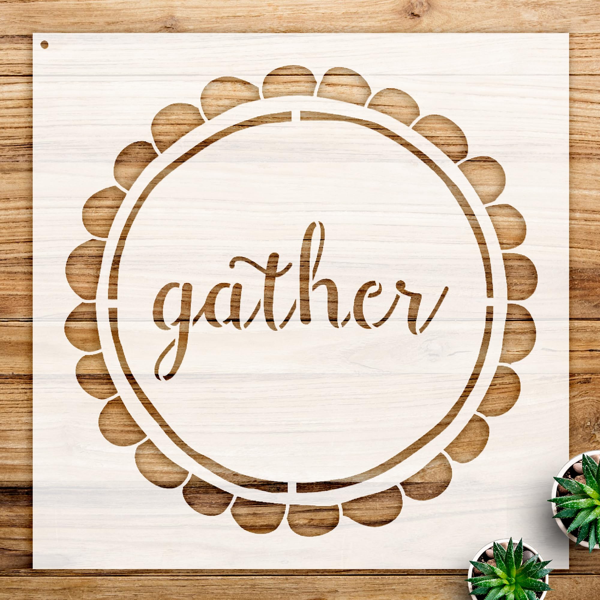 Enhance your living space with theGather Word Art Stencilfrom StencilAir. This elegant script design is perfect for adding a personal touch to your home decor and creative projects.
