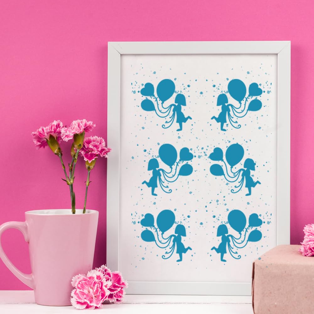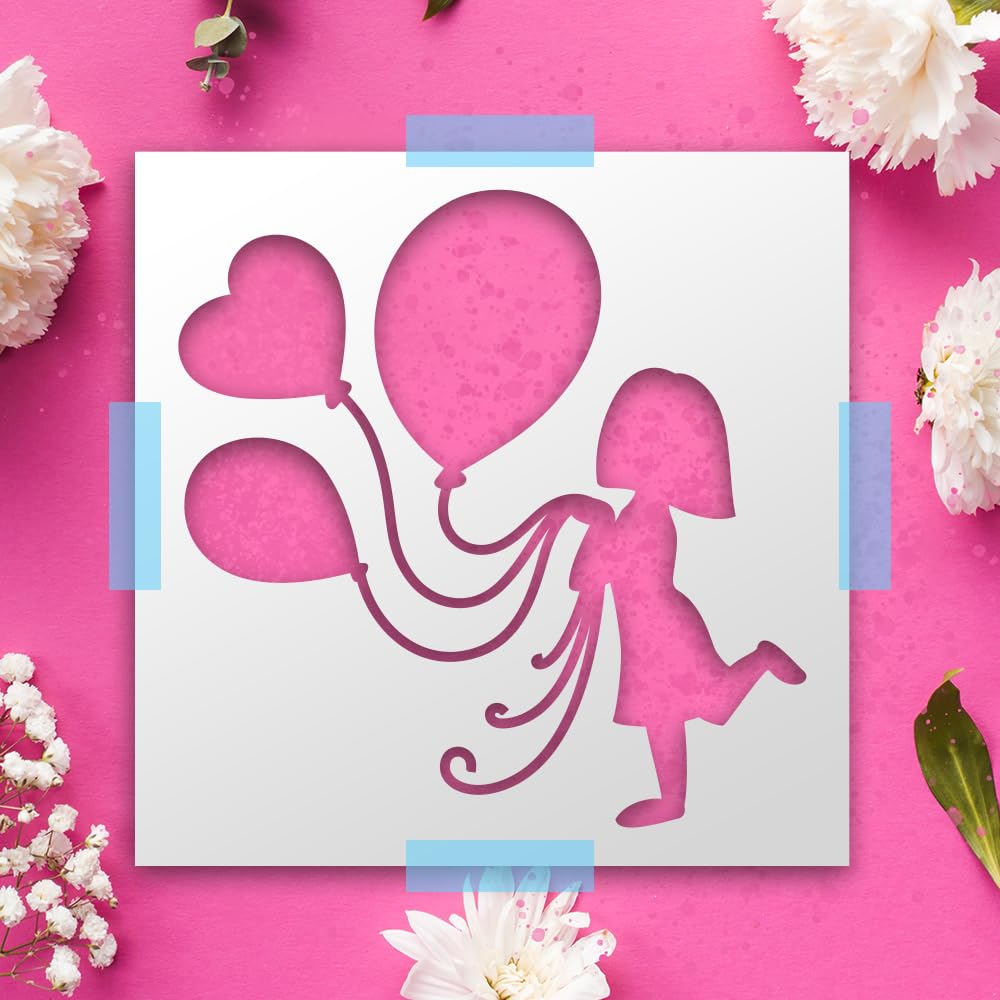 Professional Girl with Balloons Stencil – Reusable Plastic Stencil for DIY Crafts, Card Making, Nursery Wall Art, Scrapbooking Painting Template stencil for creating beautiful designs on various surfaces. Perfect for painting on wood, fabric, walls, and other materials. Reusable and durable for multiple projects.