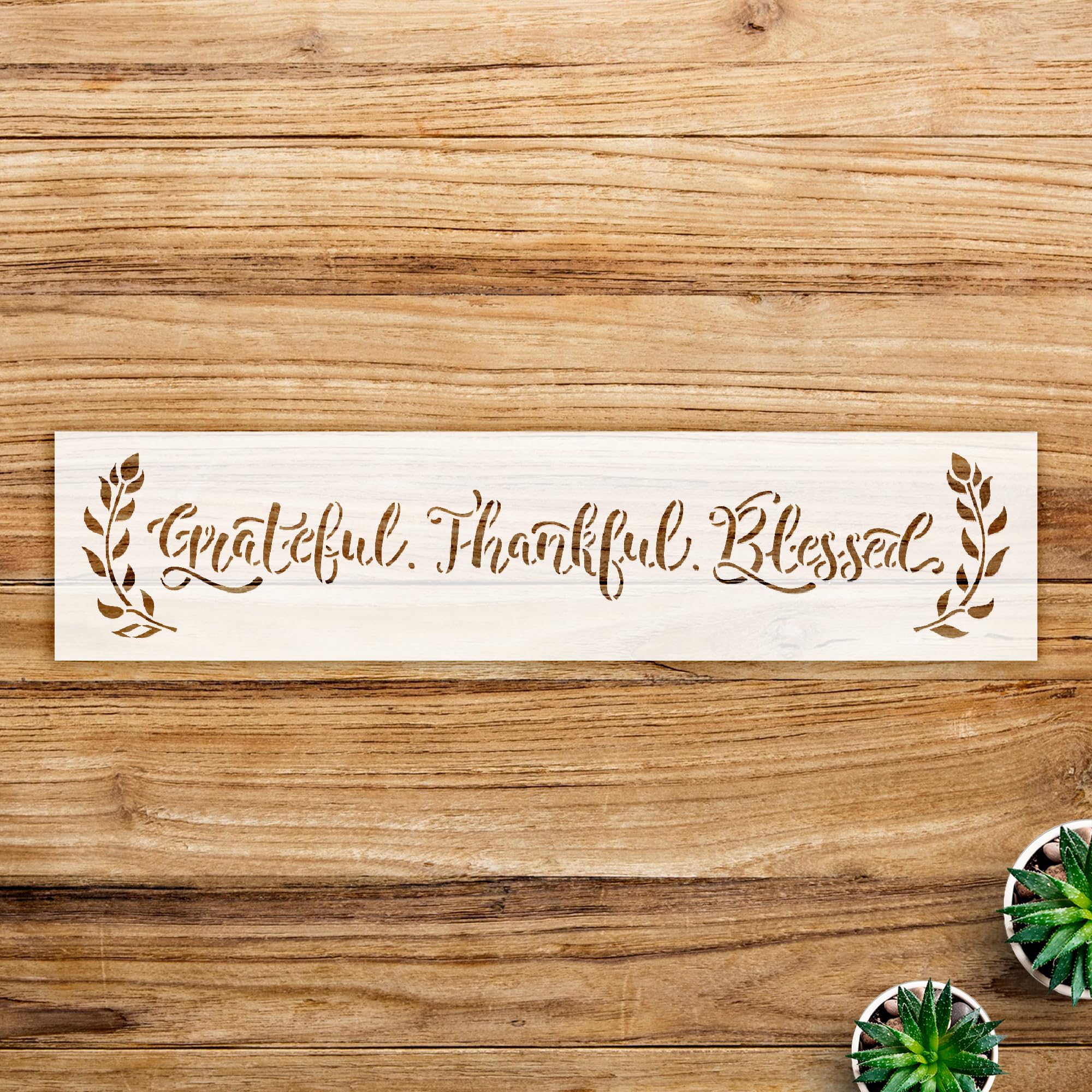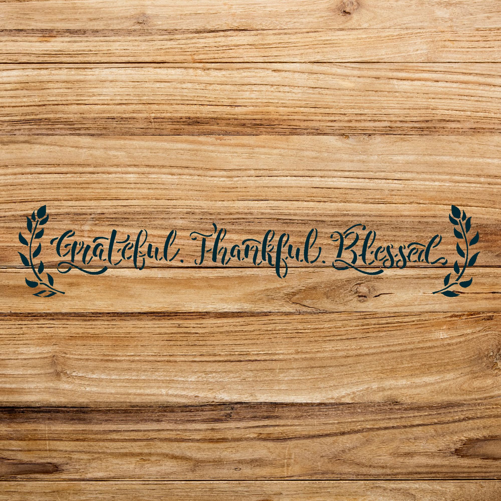 Enhance your home decor with theGrateful Thankful Blessed Stencil Patternfrom StencilAir. This reusable mylar template features elegant laurels, making it perfect for adding a touch of farmhouse charm to any room.
