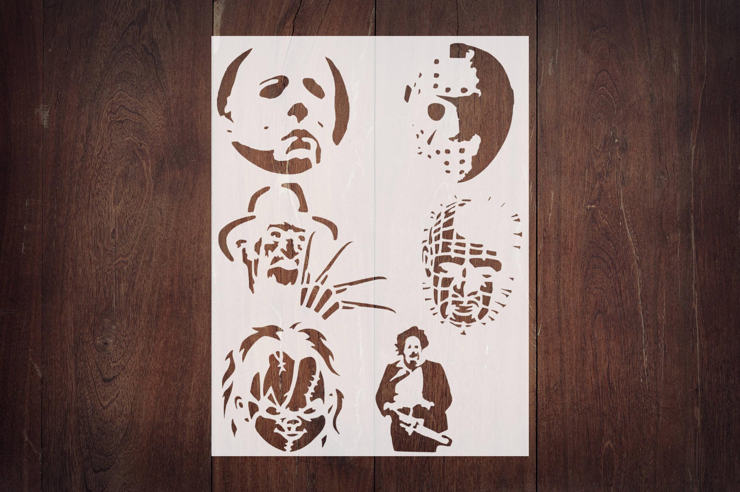 Our Halloween Iconic Horror Trio Stencil is not just a crafting tool; it’s your gateway to celebrating the season of scares with gusto. Ideal for DIY enthusiasts, horror movie buffs, and anyone looking to inject their Halloween with a dose of classic terror, this stencil promises to make your decorations the talk of Elm Street.