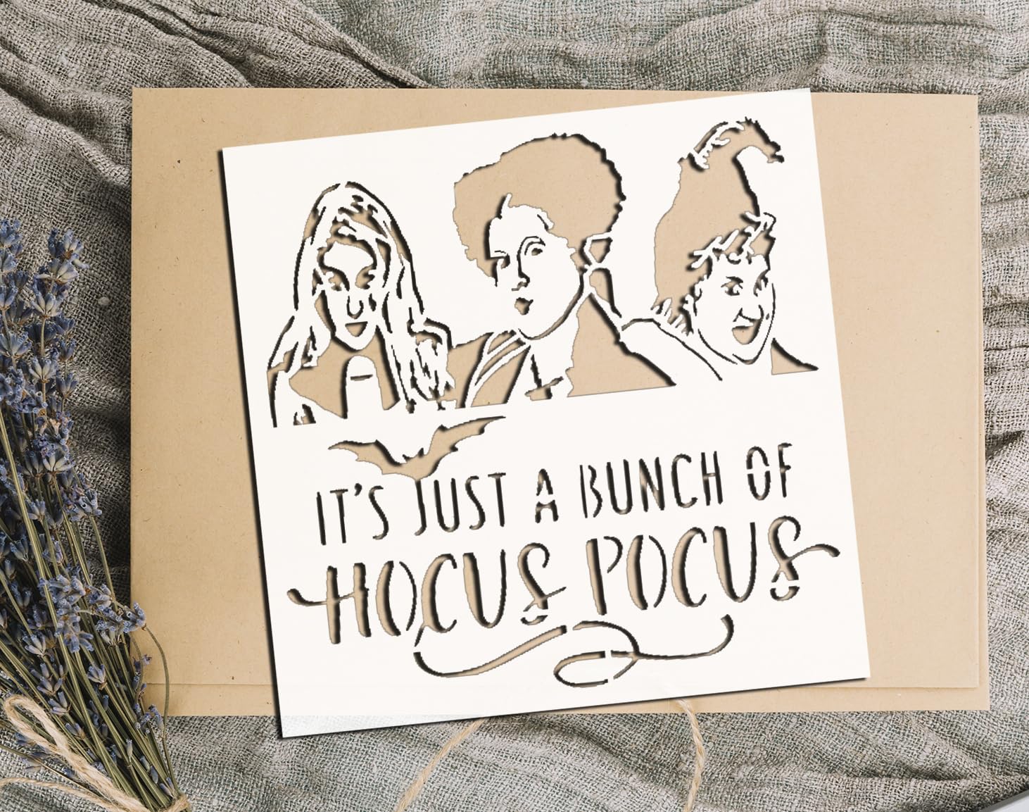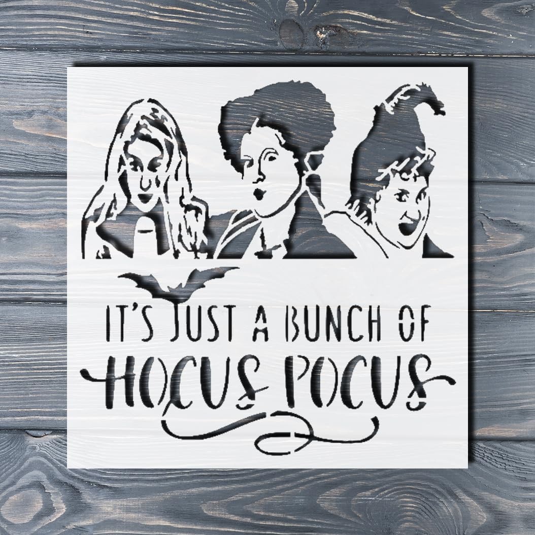 Professional Halloween Witches Quote Stencil – Reusable 3-Witch Template with It’s Just a Bunch of Hocus Pocus Design for Painting Wood Signs, Walls, and DIY Spooky Decor stencil for creating beautiful designs on various surfaces. Perfect for painting on wood, fabric, walls, and other materials. Reusable and durable for multiple projects.