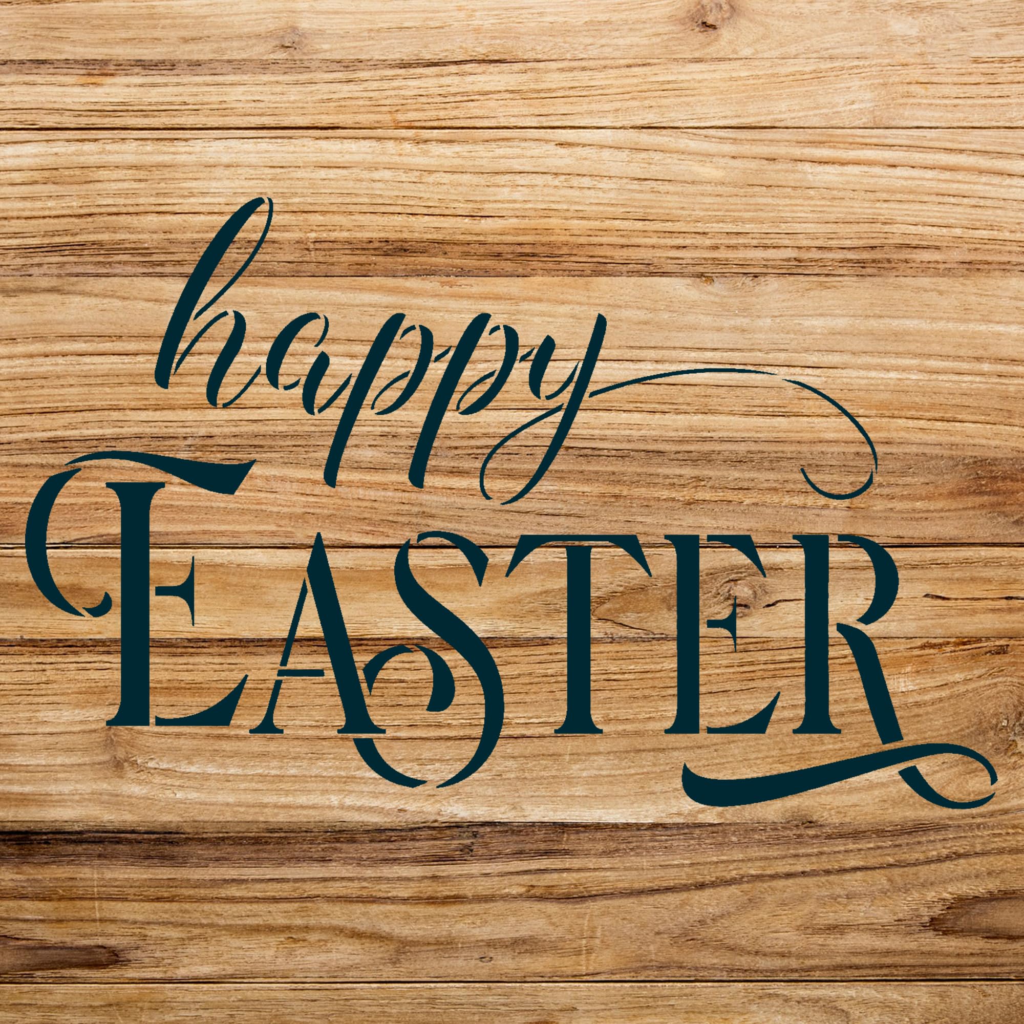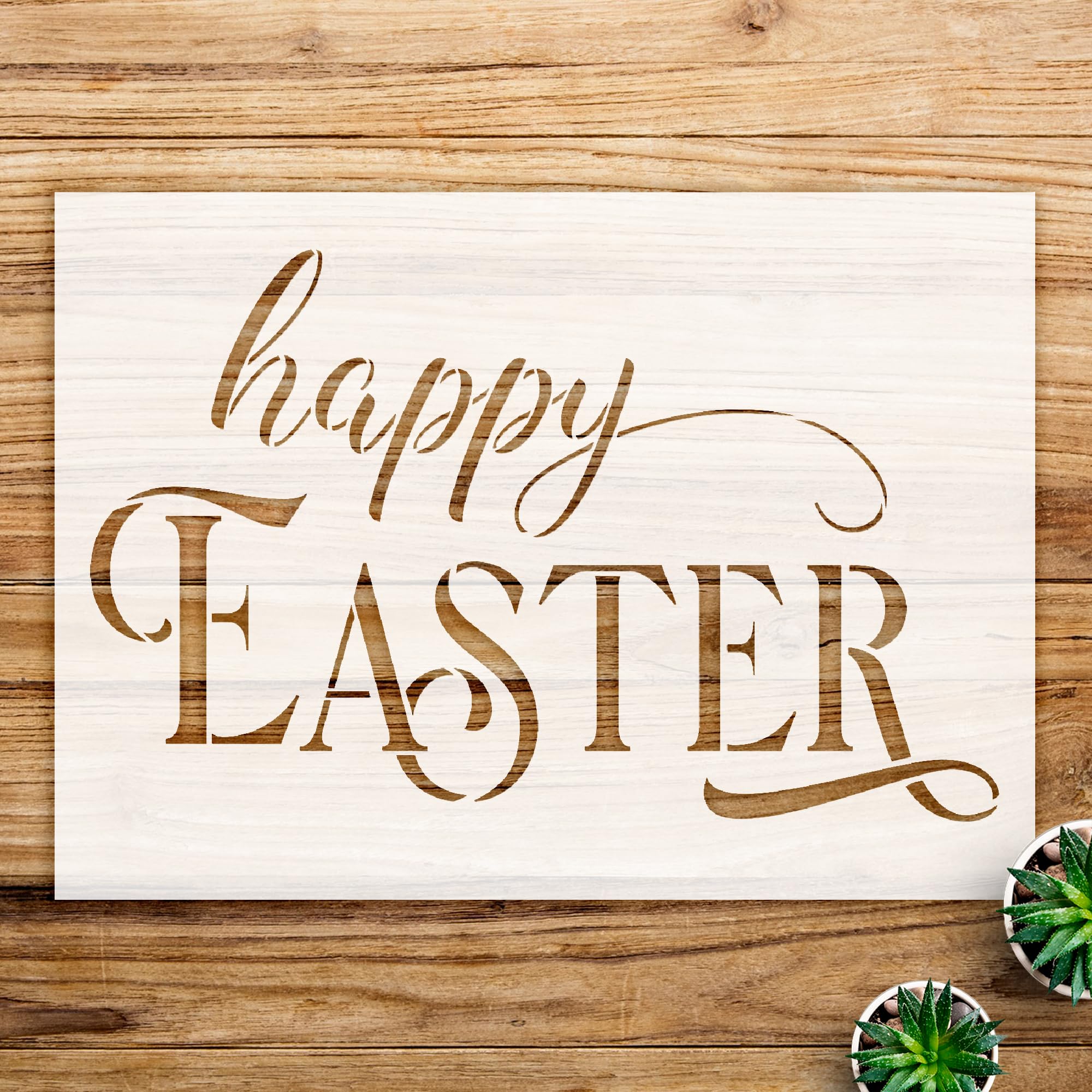 What’s Included One Happy Easter script stencil Instructions for easy application