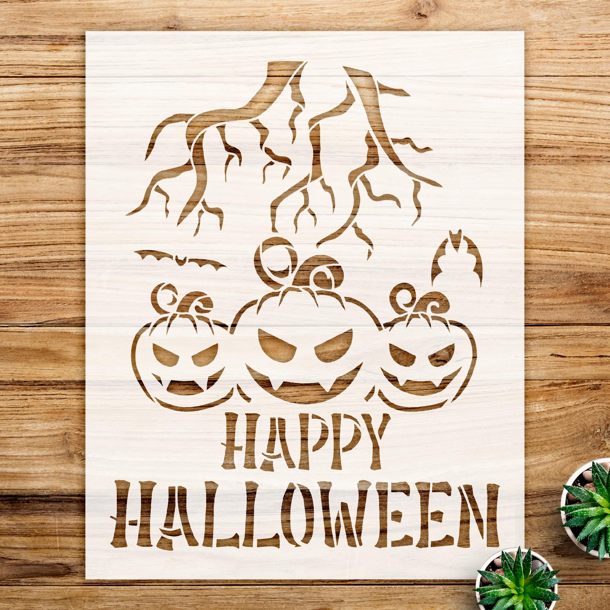 What’s Included One Happy Halloween stencil pattern Instructions for easy application