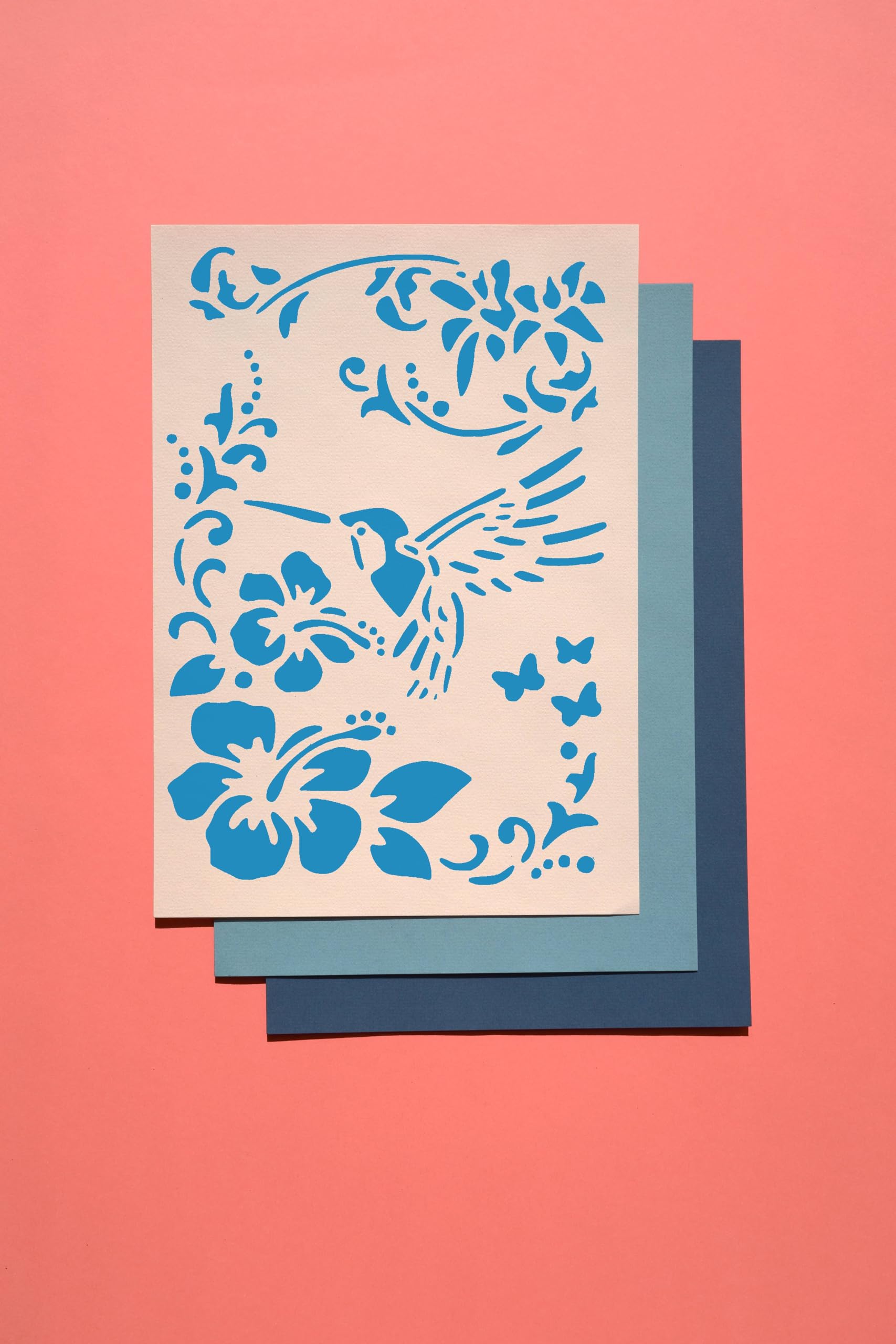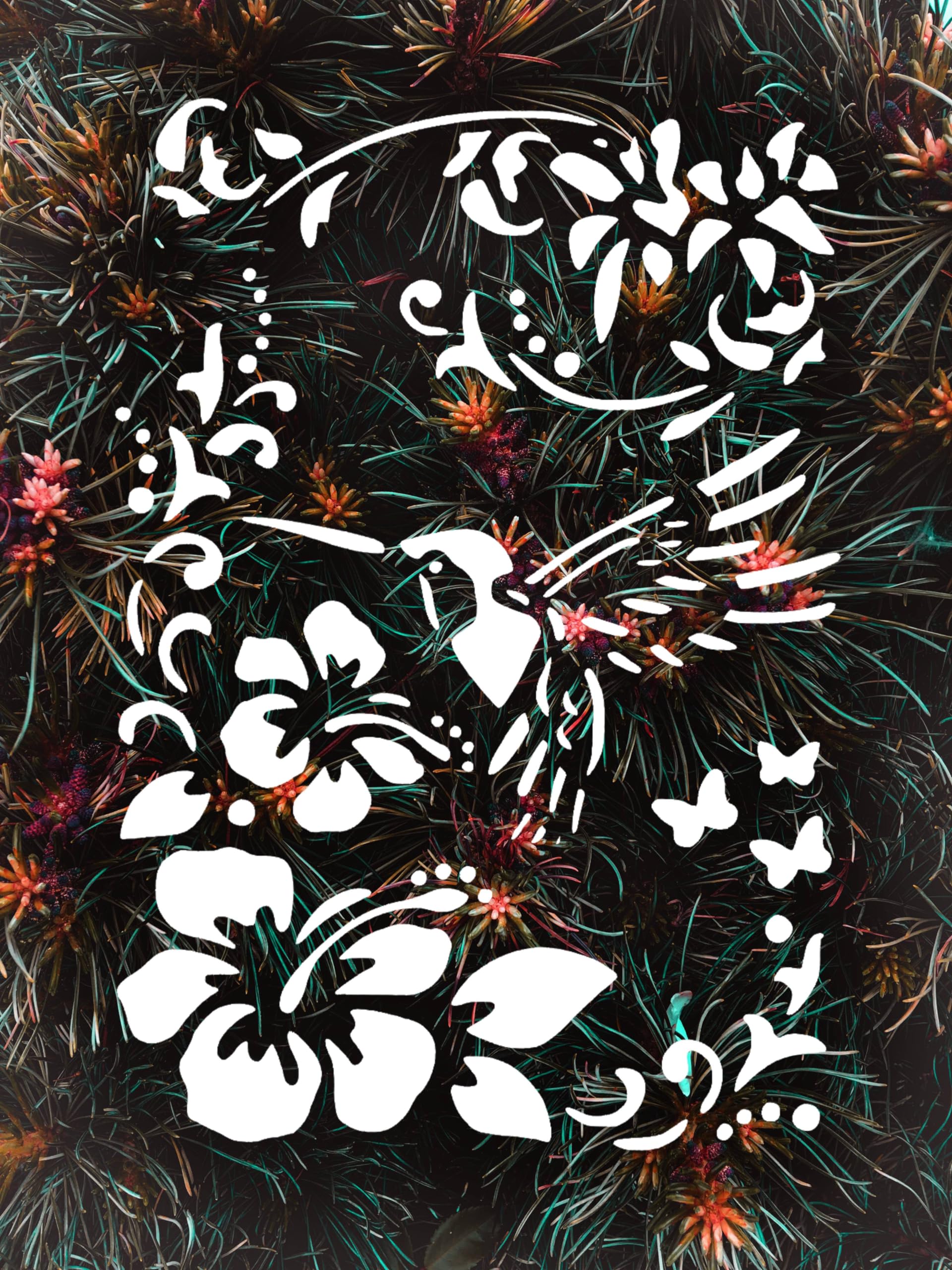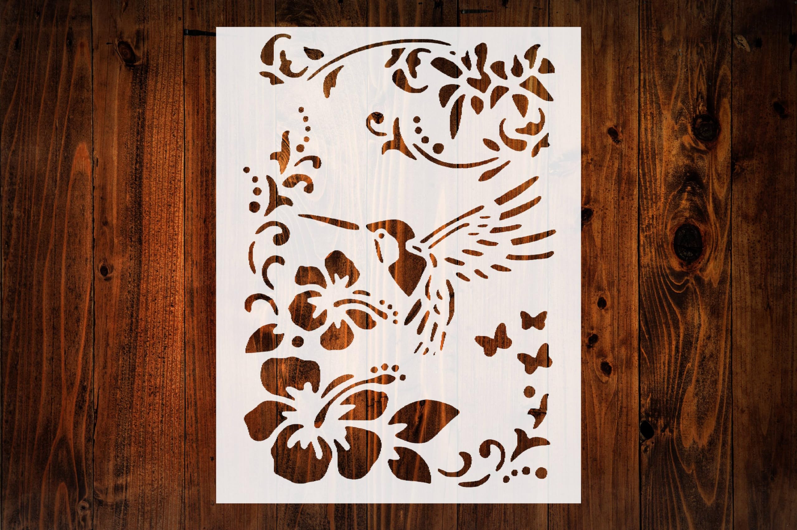 • Elegant Hummingbird and Flowers Design: Features a beautifully detailed depiction of a hummingbird in flight among flowers, captured in an stencil, perfect for bringing the essence of nature into your projects.