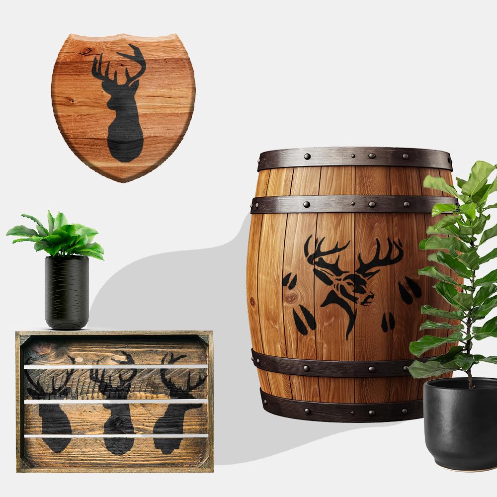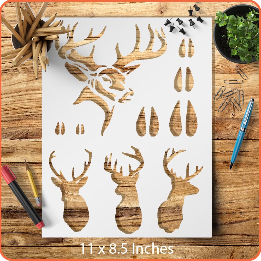 Professional Hunting Buck Head Deer Tracks Stencil Template Reusable for Painting on Walls, Wood, Glass, Scarpbooking, Arts and Crafts, DIY – LIONX stencil for creating beautiful designs on various surfaces. Perfect for painting on wood, fabric, walls, and other materials. Reusable and durable for multiple projects.