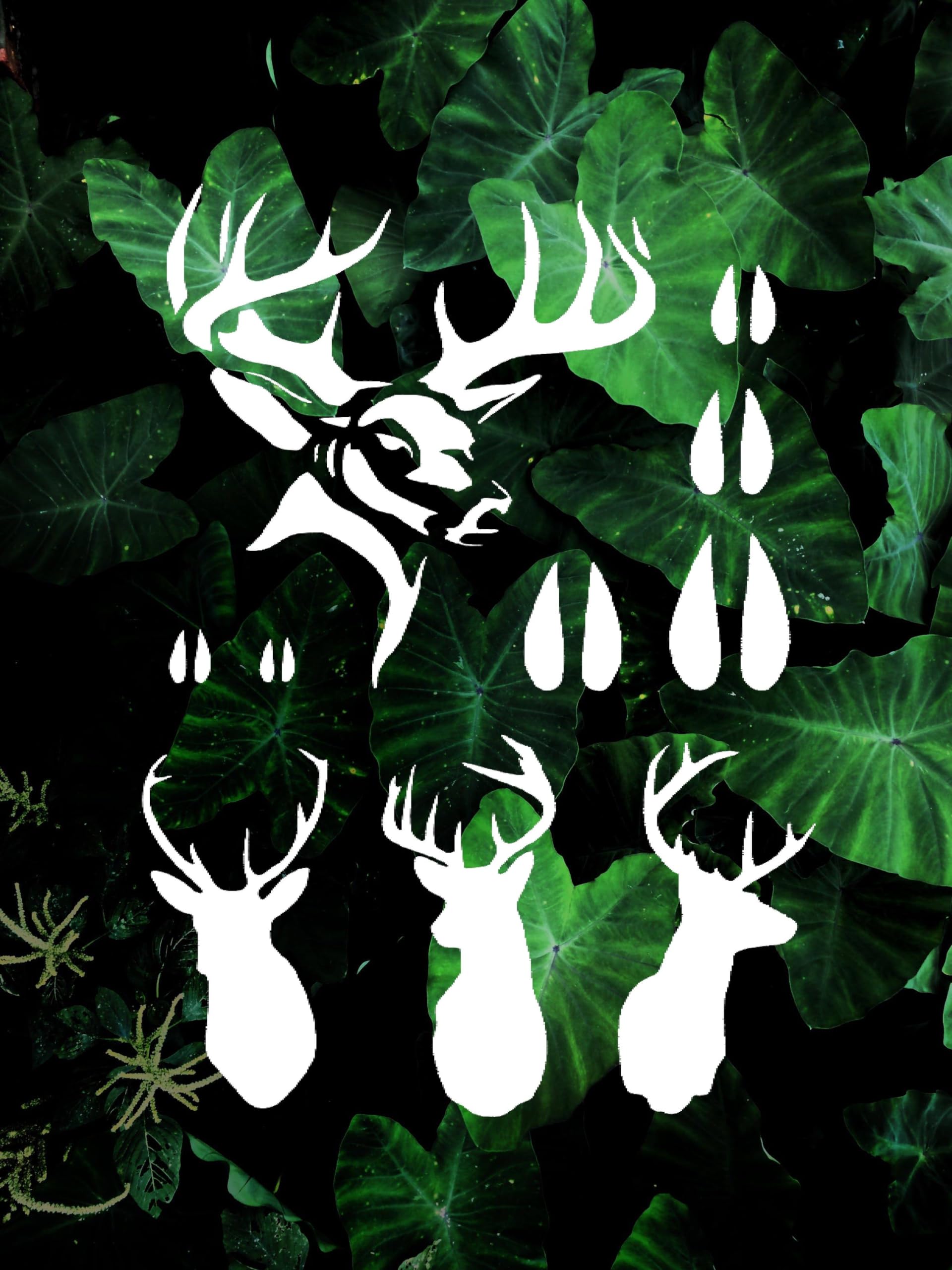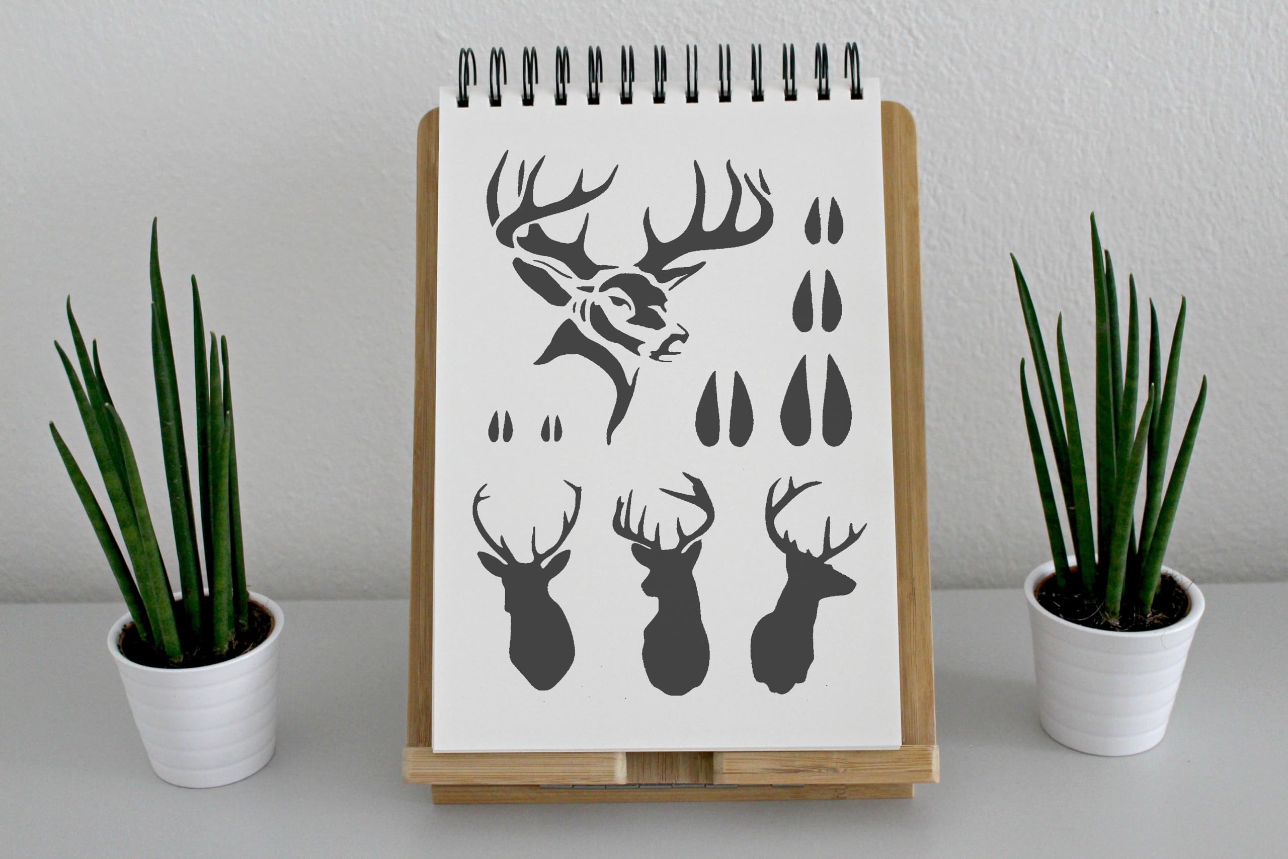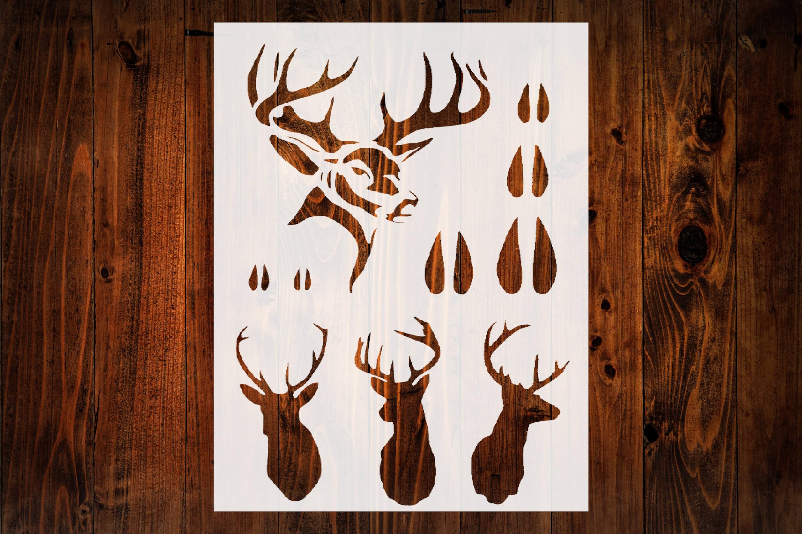 Professional Hunting Buck Head & Tracks Rack Deer Stencil, Reusable & Sturdy, , Custom Wildlife Art Template stencil for creating beautiful designs on various surfaces. Perfect for painting on wood, fabric, walls, and other materials. Reusable and durable for multiple projects.