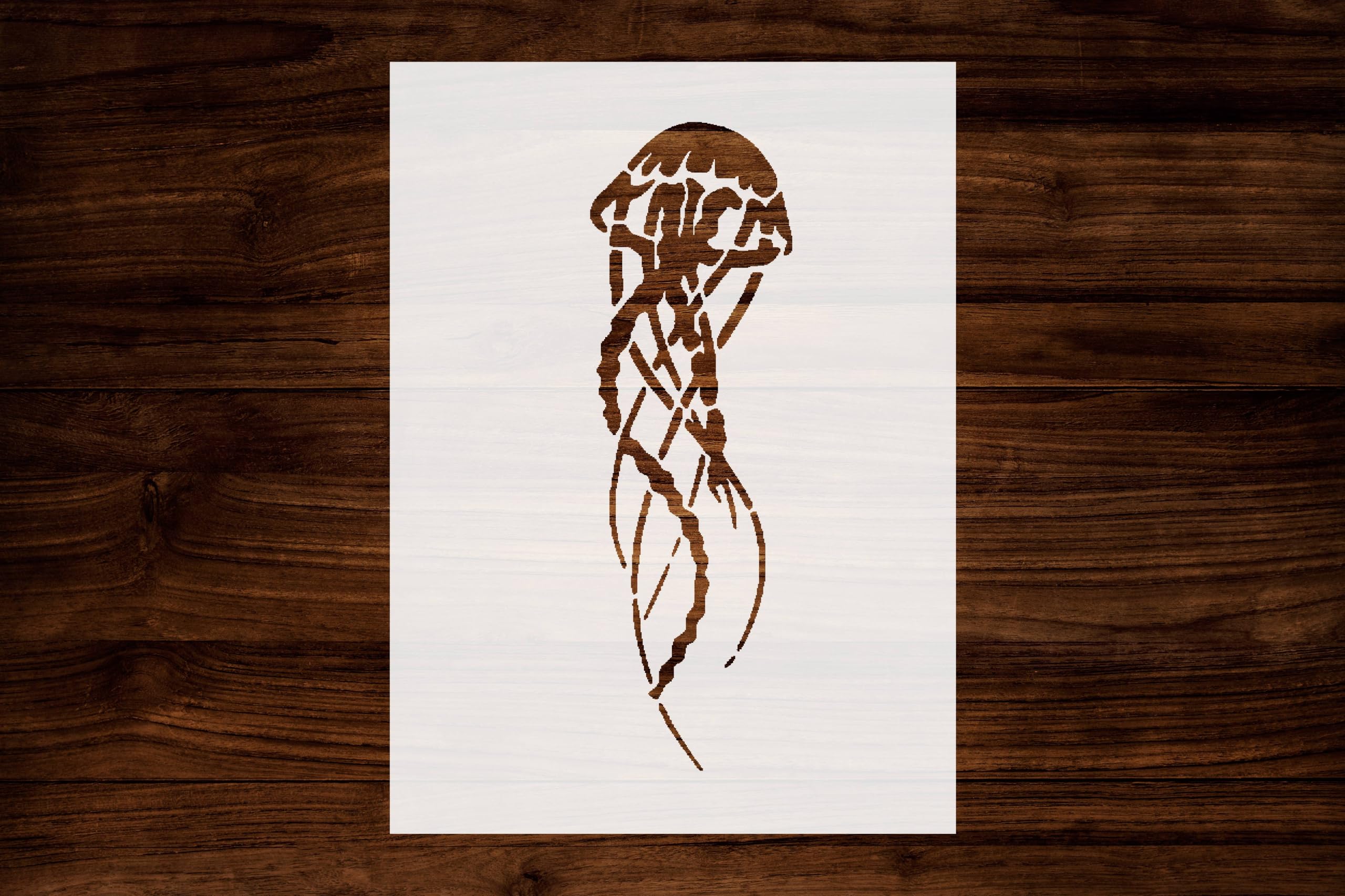 Constructed for durability and repeated use, this stencil allows you to explore a myriad of surfaces and materials. From transforming a plain wall into an underwater scene to adding an oceanic vibe to apparel, the possibilities are as vast as the sea itself. Its size is perfect for detailed applications, ensuring that the intricate beauty of the jellyfish is captured in every project.