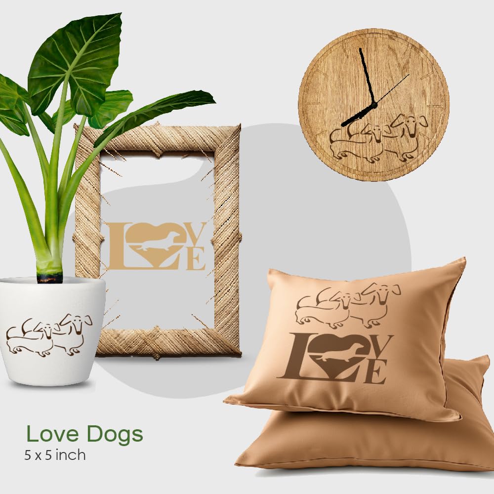 Professional Love Dogs Dachshunds Stencil Art Craft Template Logo for Scrapbooking Wall, Wood, Glass Painting for Airbrush Painting Drawing and More Reusable Stencil STENCILAIR stencil for creating beautiful designs on various surfaces. Perfect for painting on wood, fabric, walls, and other materials. Reusable and durable for multiple projects.