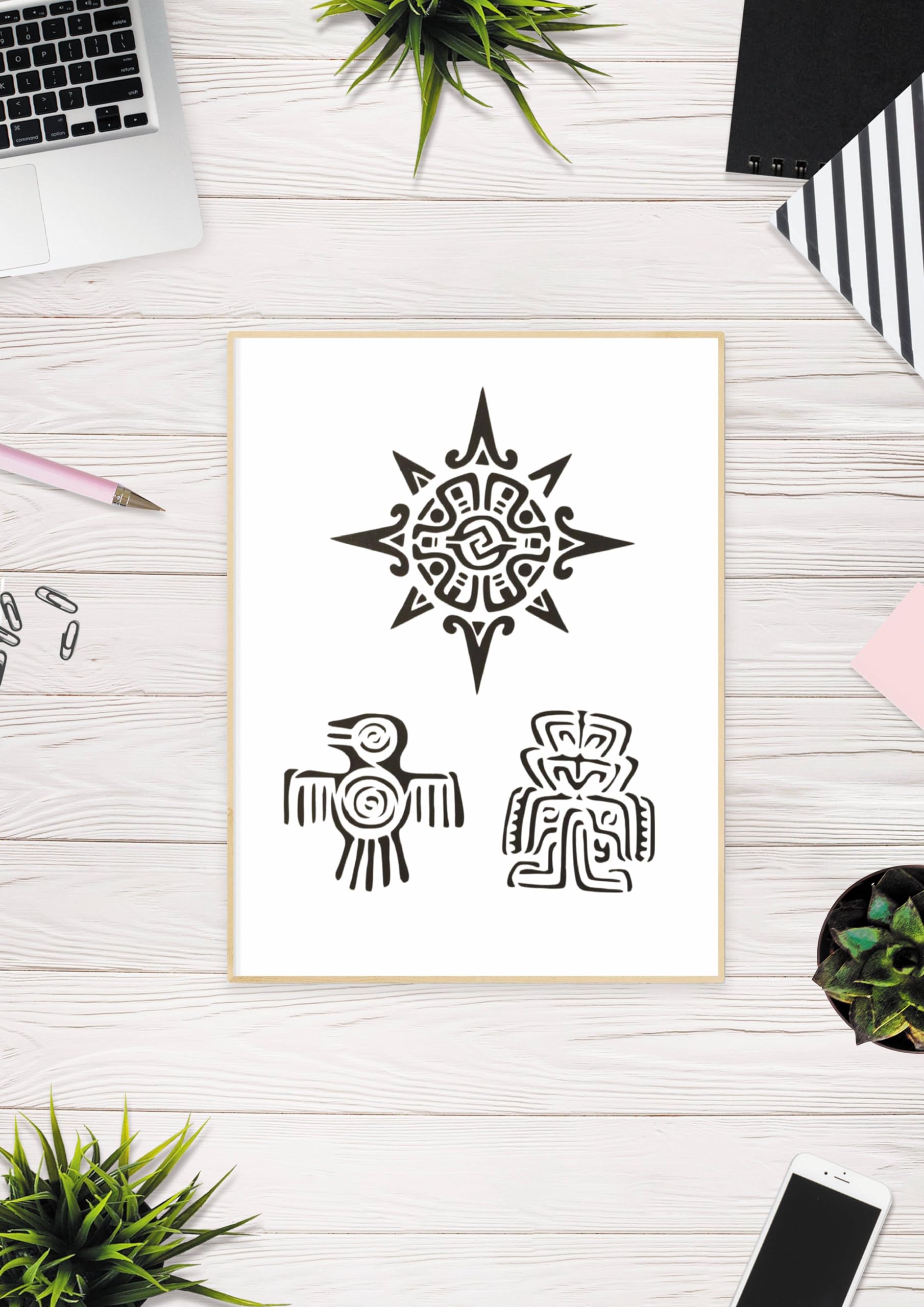Professional Mexico Mayan Aztec Symbol Stencil, Reusable & Sturdy, Custom Stencil for Art, Crafts & DIY Projects stencil for creating beautiful designs on various surfaces. Perfect for painting on wood, fabric, walls, and other materials. Reusable and durable for multiple projects.