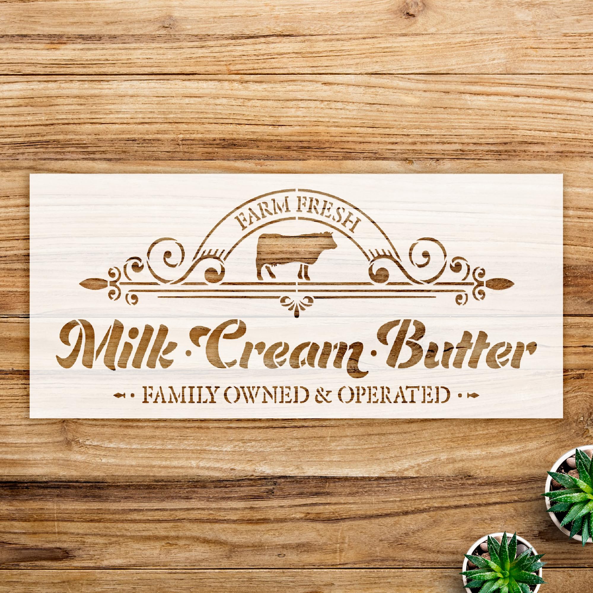 Professional Milk Cream and Butter Stencil for Farmhouse Kitchen Decor, Cow Silhouette Design, Ideal for Walls, Wood, and DIY Projects – Size A3 () stencil for creating beautiful designs on various surfaces. Perfect for painting on wood, fabric, walls, and other materials. Reusable and durable for multiple projects.