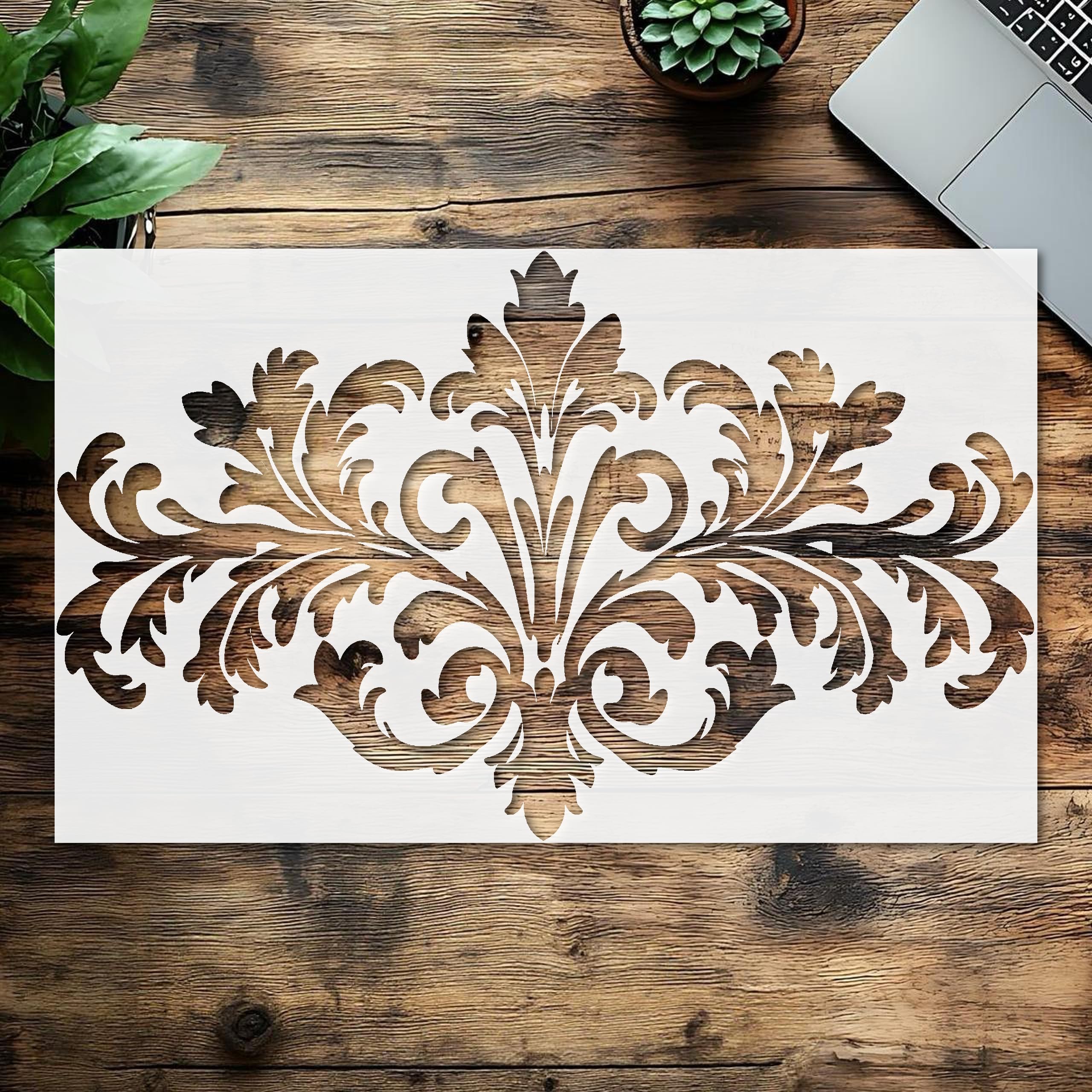 Professional Mirrored Acanthus Art Nouveau Scroll Reusable Stencil – Plastic Template for Painting on Walls, Wood, Fabric, and DIY Crafts stencil for creating beautiful designs on various surfaces. Perfect for painting on wood, fabric, walls, and other materials. Reusable and durable for multiple projects.