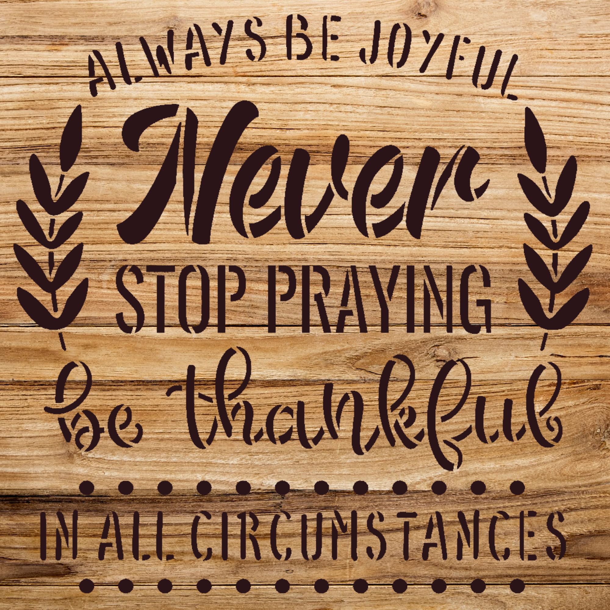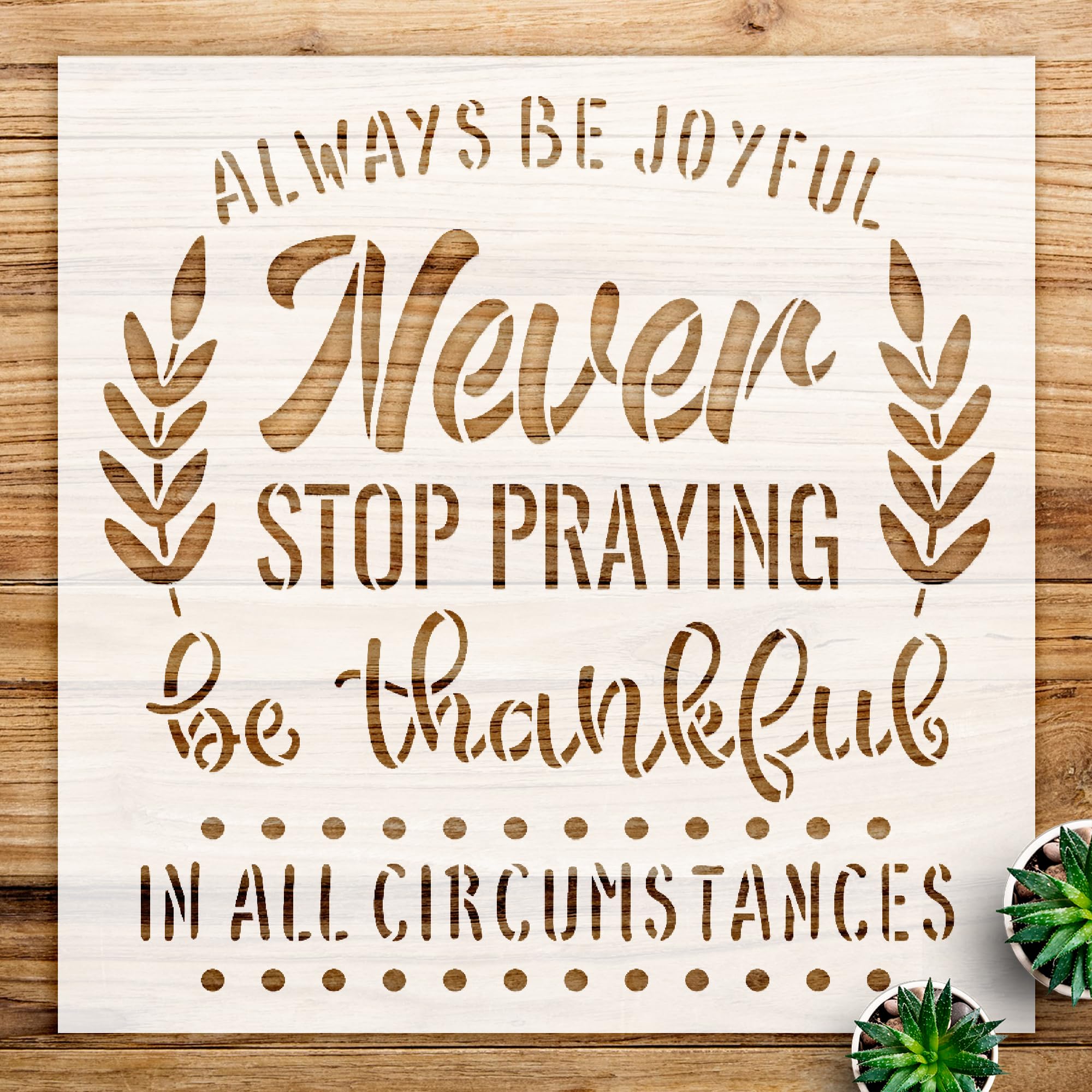 Elevate your home decor with theMotivational Quote Stencilfrom StencilAir. This reusable mylar template features the uplifting message ‘Always Be Joyful in All Circumstances,’ perfect for adding a positive touch to any environment.