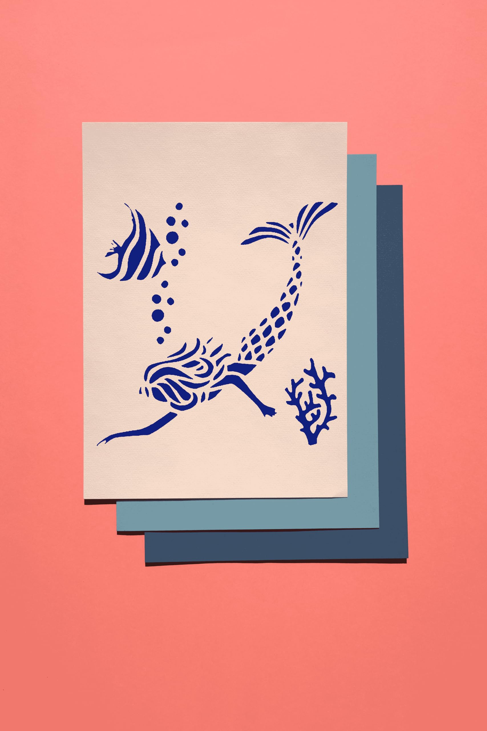 • Underwater Magic: Captivating mermaid stencil for creating enchanting underwater scenes. Infuse your art and crafts with the magical allure of the sea.
