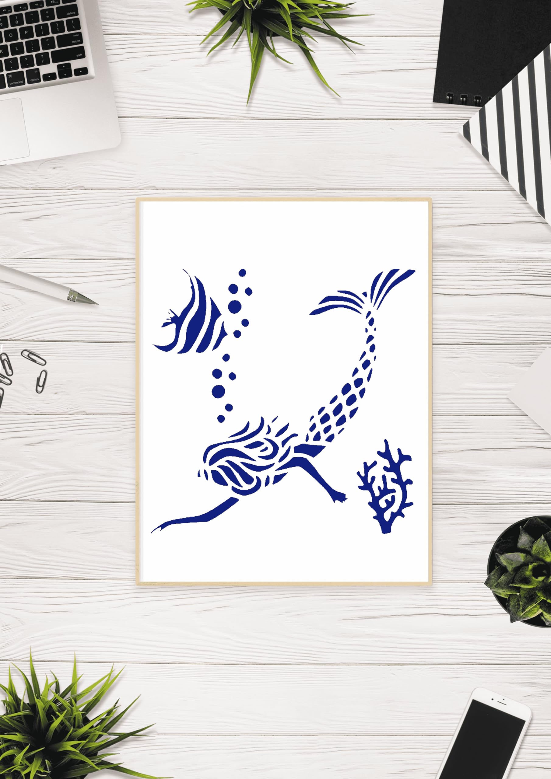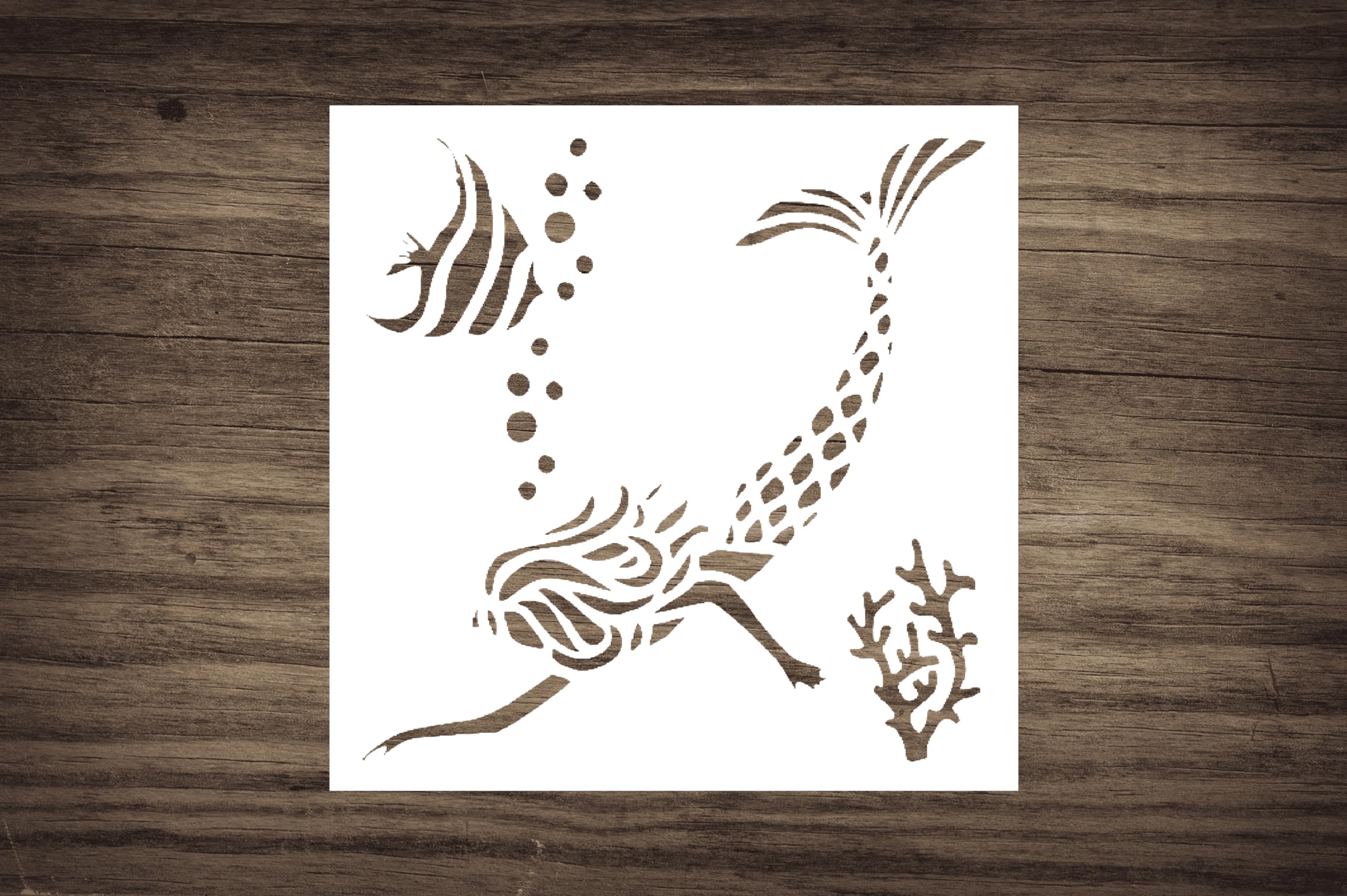 Professional Nautical Mermaid Stencil – Create Underwater Magic in Your Art and Crafts stencil for creating beautiful designs on various surfaces. Perfect for painting on wood, fabric, walls, and other materials. Reusable and durable for multiple projects.