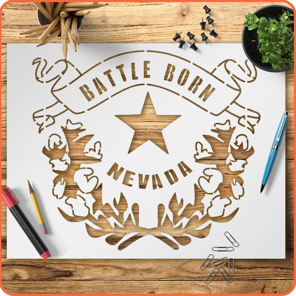 Professional Nevada “Battle Born” Stencil – Reusable State Pride Template with Star and Floral Emblem for DIY Crafts, Wall Art, Wood Signs – USA Patriotic Stencil Sheet stencil for creating beautiful designs on various surfaces. Perfect for painting on wood, fabric, walls, and other materials. Reusable and durable for multiple projects.